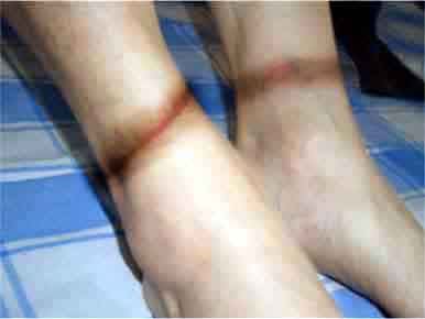 在残酷的“攻坚战”中,很多法轮功学员被折磨的双腿不能行走,腿脚麻木,失去知觉;有的脚脖子红肿、致伤,不能站立;手臂被绳子、手铐绑铐多日,导致手臂肿胀、剧痛,身心受到严重摧残。但是大批法轮功学员拒绝“转化”。