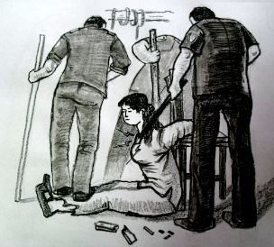 同时,院里把长期坚强不屈的法轮功学员集中在一起办起“强化班”,每天被强迫端正姿势坐小板凳,除了吃饭、上厕所外,坐到半夜12点,强迫听污蔑大法的文章,部份学员的臀部都坐破皮了,血痂刮到内裤上,针扎一般的痛。再不屈服,狱警就上电棍,哪儿敏感往哪儿电。