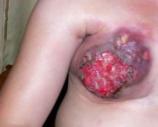酷刑:电击乳房 法轮功学员王云洁被电击后溃烂的乳房