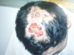 熊文旗被警察指使的犯人打成头皮脱落,头盖骨外露