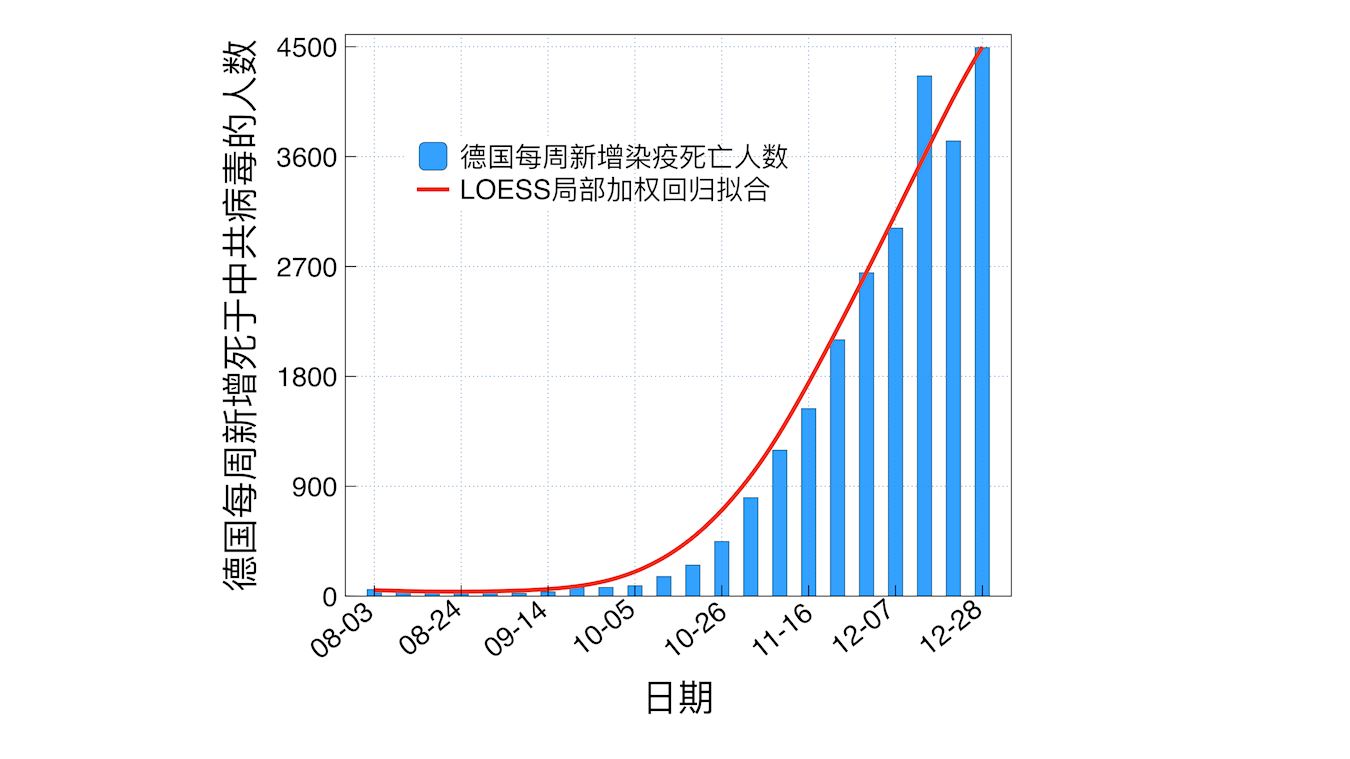 2020年岁末,德国的新冠病毒死亡人数呈暴增趋势(图3)。12月1日至12月31日是德国疫情爆发以来死亡率最高的一个月,超过16000人死于这次瘟疫。