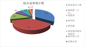 拘留两次;劳教一次;经济迫害两万零七百余元现金。(七百元是北京警察搜走)