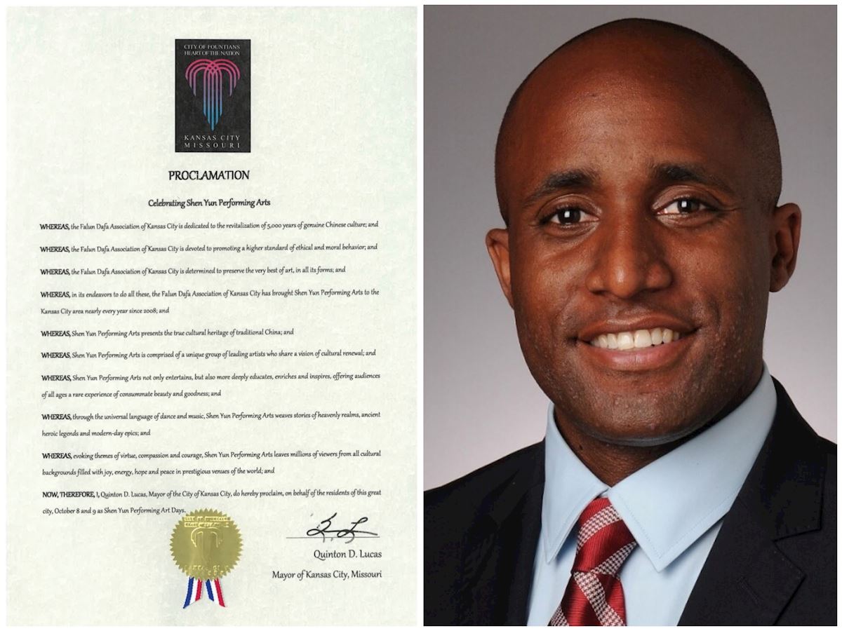 堪萨斯城市长昆顿·D·卢卡斯(Quinton D. Lucas)在“恭贺神韵演出”的褒奖令中感佩地写道:“堪萨斯城法轮大法学会致力于振兴真正的五千年中国文化,致力于促进更高标准的伦理道德品行,并决心保护所有形式艺术的最精华;为实现这些目标,自2008年以来几乎每年都将神韵演出带到堪萨斯城地区。
