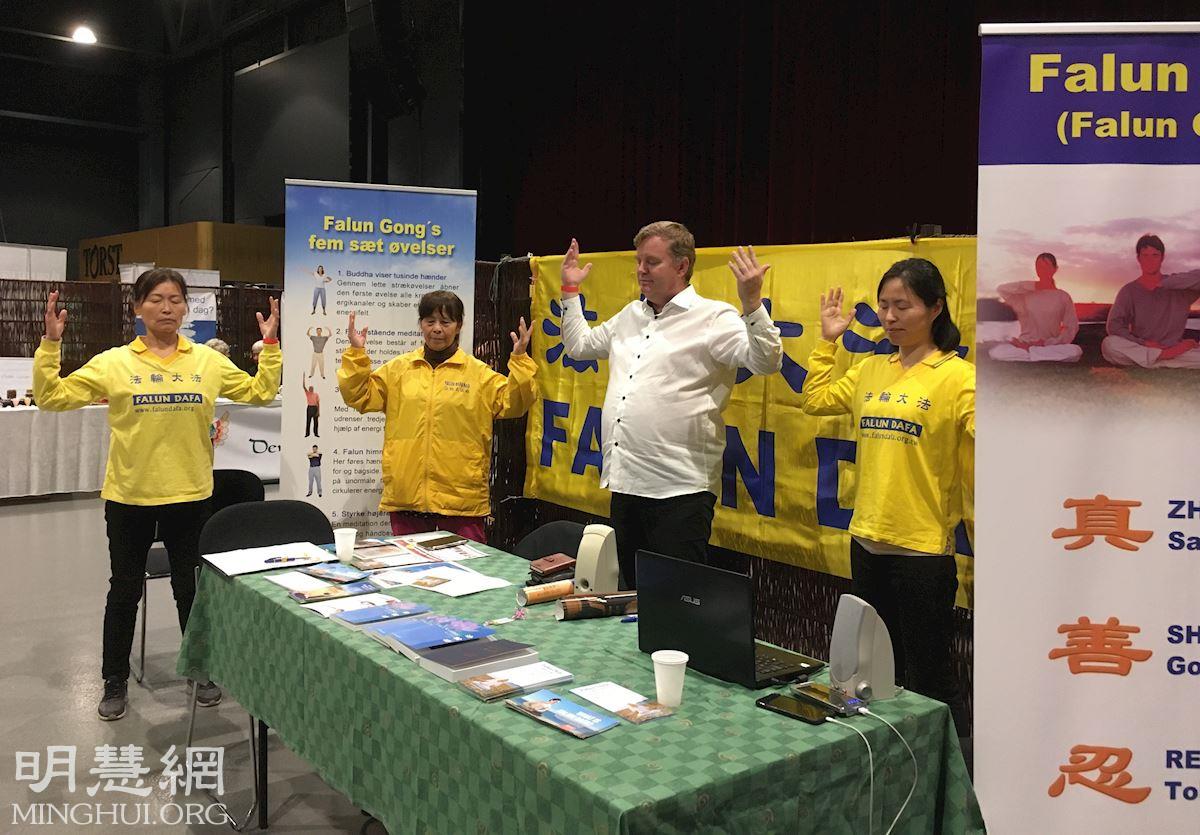 ![]() 图1:法轮功学员在健康博览会上展示功法 |