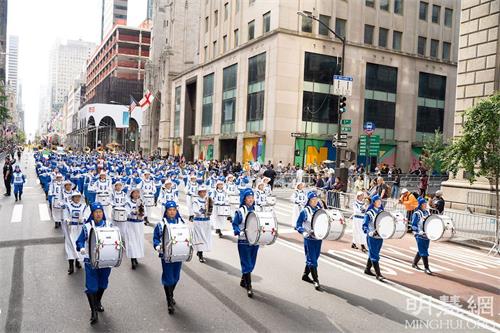 ![]() 图1~5:二零二一年十月十一日,睽违两年的、一年一度的“哥伦布日”游行回到了纽约市的第五大道。法轮功学员组成的天国乐团,炼功队,腰鼓队和旗阵参加了游行。 |