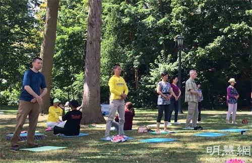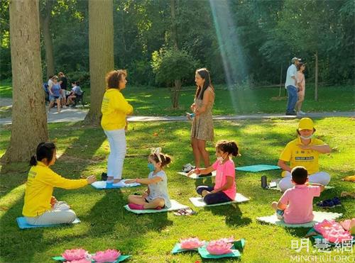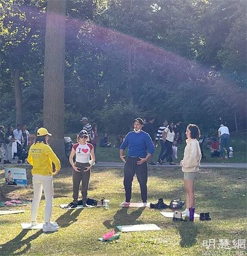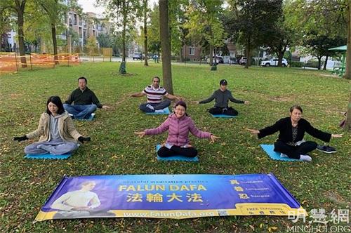 【明慧网二零二一年十月十四日】(明慧多伦多记者站报道)在病毒疫情继续在世界蔓延的当今,目前还没有真正能解决的方法,很多人都希望寻找到让自己能脱离这个劫难的方法。加拿大多伦多法轮功学员在各个公园建立起的炼功点,从二零二一年十月三日、四日的那个周末有十二个点开放,到九日、十日的周末达到十七个点,各个炼功点都吸引了很多有缘人来学炼功法,感受大法的神奇和超常。