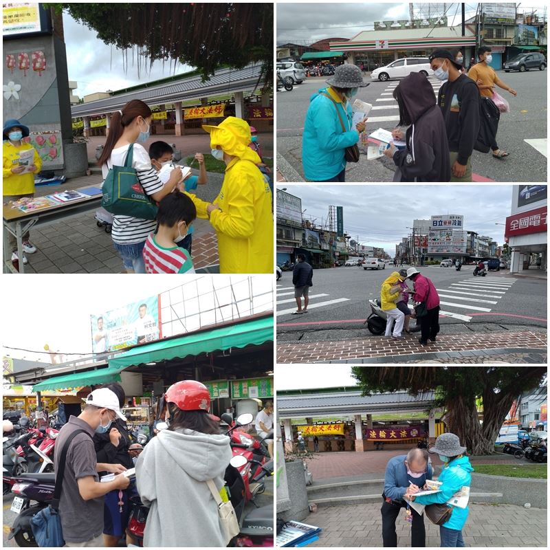 在好客广场前的黄昏市场设摊的邱小姐是大陆人,嫁到台湾已有十多年,常感受到台湾人的善良质朴、好客热情,也表示常在各个公园、广场看到有人在炼法轮功,刚开始她很惊讶,因为这在大陆是不被允许的。后来看到新闻、网路上揭露中共迫害法轮功的报导,也知道了天安门自焚案是造假的新闻后,她明白原来共产党都在欺骗百姓,并当场退出了曾入过的少先队。