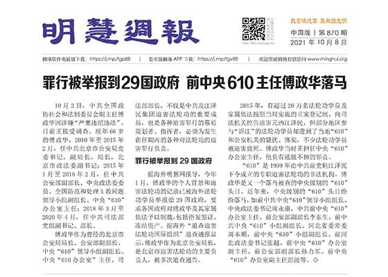 原中共司法部长、中央610主任傅政华遭恶报落马