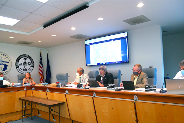 图2:二零二一年十月十二日,爱塞克斯郡(Essex County)通过的决议案,谴责和抵制中共活摘法轮功等良心犯器官的行径。图为九月十四晚,美国弗吉尼亚州爱塞克斯郡(Essex County)郡委会讨论现场。
