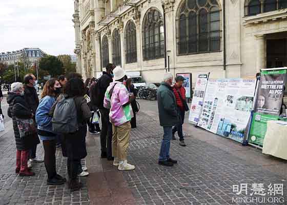 十一月六日以及十一月十三、十四日两个周末,法轮功学员继续在巴黎市中心的夏特蕾地铁站和新桥地铁站举办法轮功信息日活动。