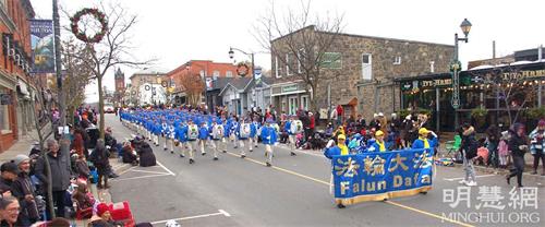 ![]() 图3~4:由法轮功学员组成的多伦多天国乐团应邀参加十一月二十日(星期六)下午五点在乔治敦(Georgetown)举行的圣诞游行。 |