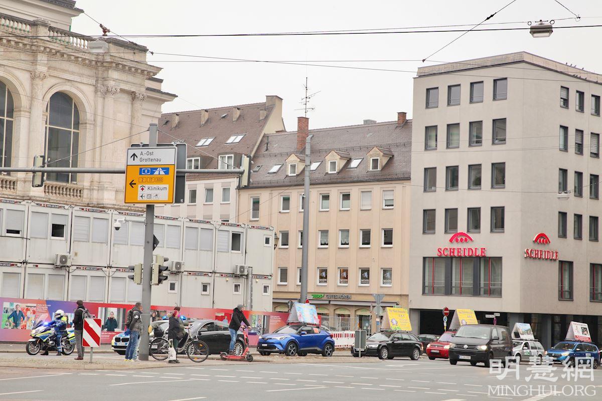 法轮功学员的真相汽车游行从奥格斯堡博览会(Messe)开始,途径特奥多尔·豪森广场(Thodor Heuss Platz)、红墙门街(Rote Torwallstr)、城市剧院所在的肯尼迪广场(Kennedy Platz)等内城著名地带,同时还开到郊区等地,在警车的护送下,共进行了三个小时的游行。沿途看到车队的民众,有的向车队招手,有的竖起大拇指,也有的拍照,不少人静静地观看。