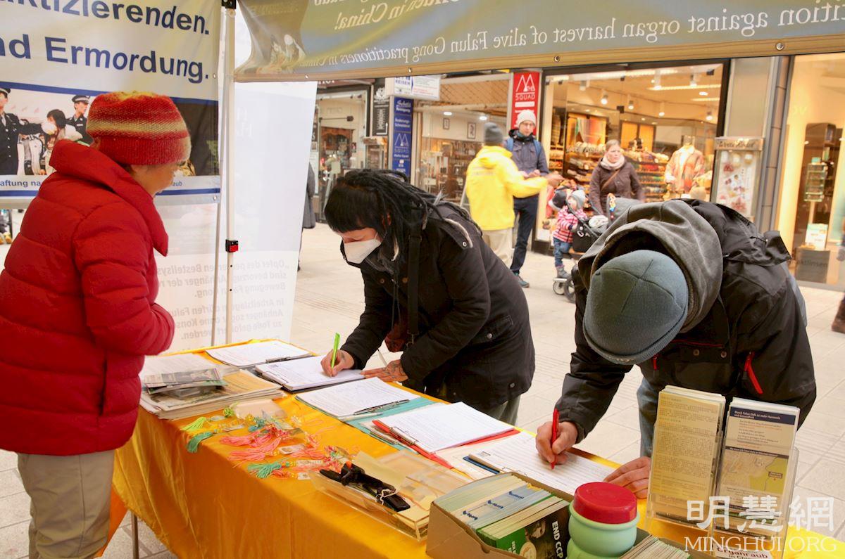 在内城步行街设立的展台,也吸引了很多民众签名声援法轮功学员反迫害。“我在慕尼黑就看到过这类活动,也了解了到底是怎么回事。当时因为时间来不及,我没有签名。现在看到这里的活动,就想为什么不(签)呢。”语言教师弗拉胡-海因(Vlachou-Hein)和女儿一起签了名。