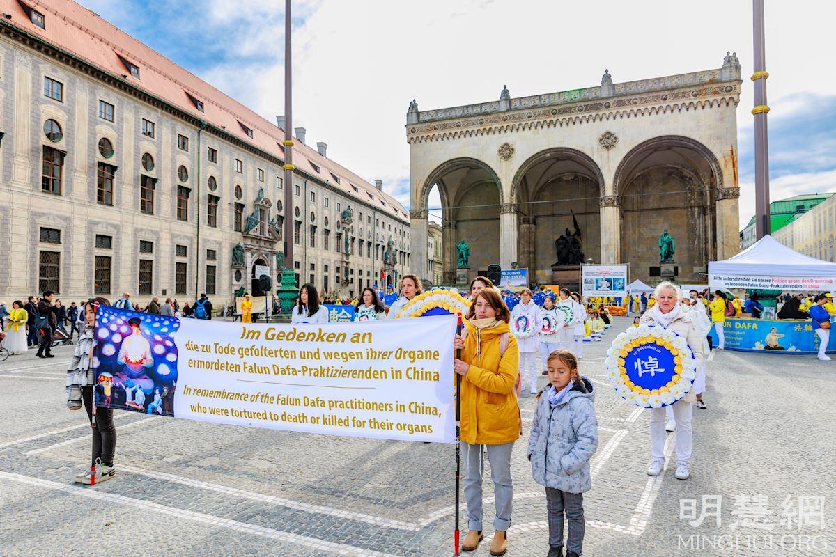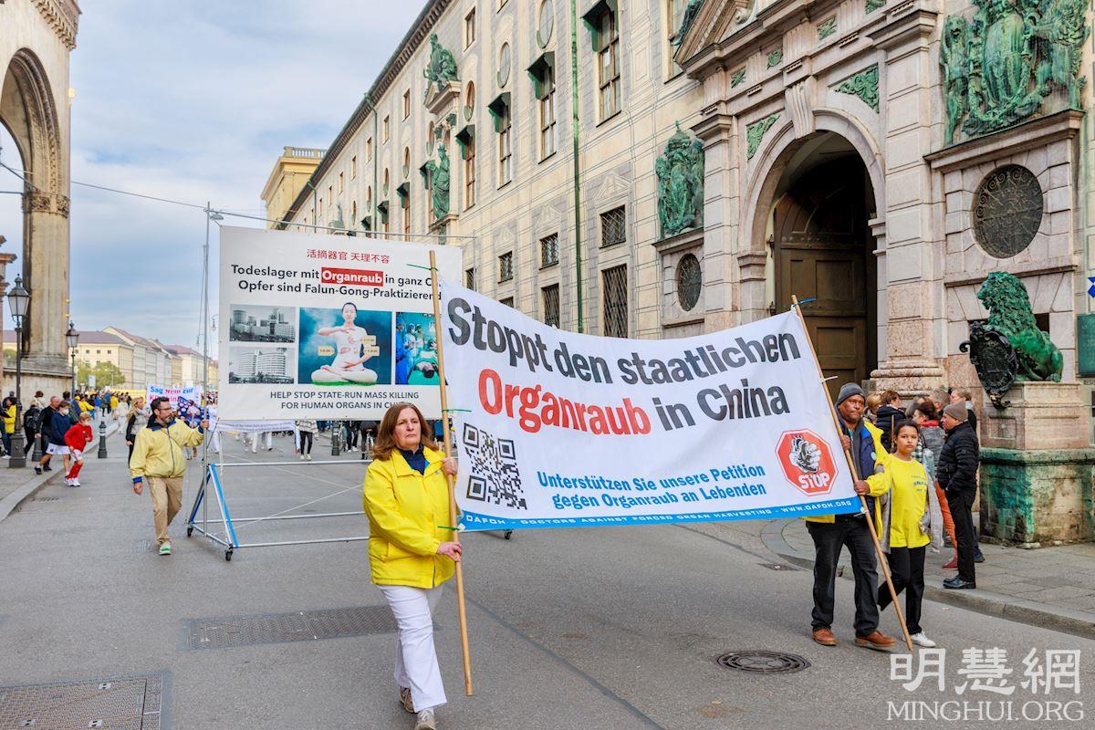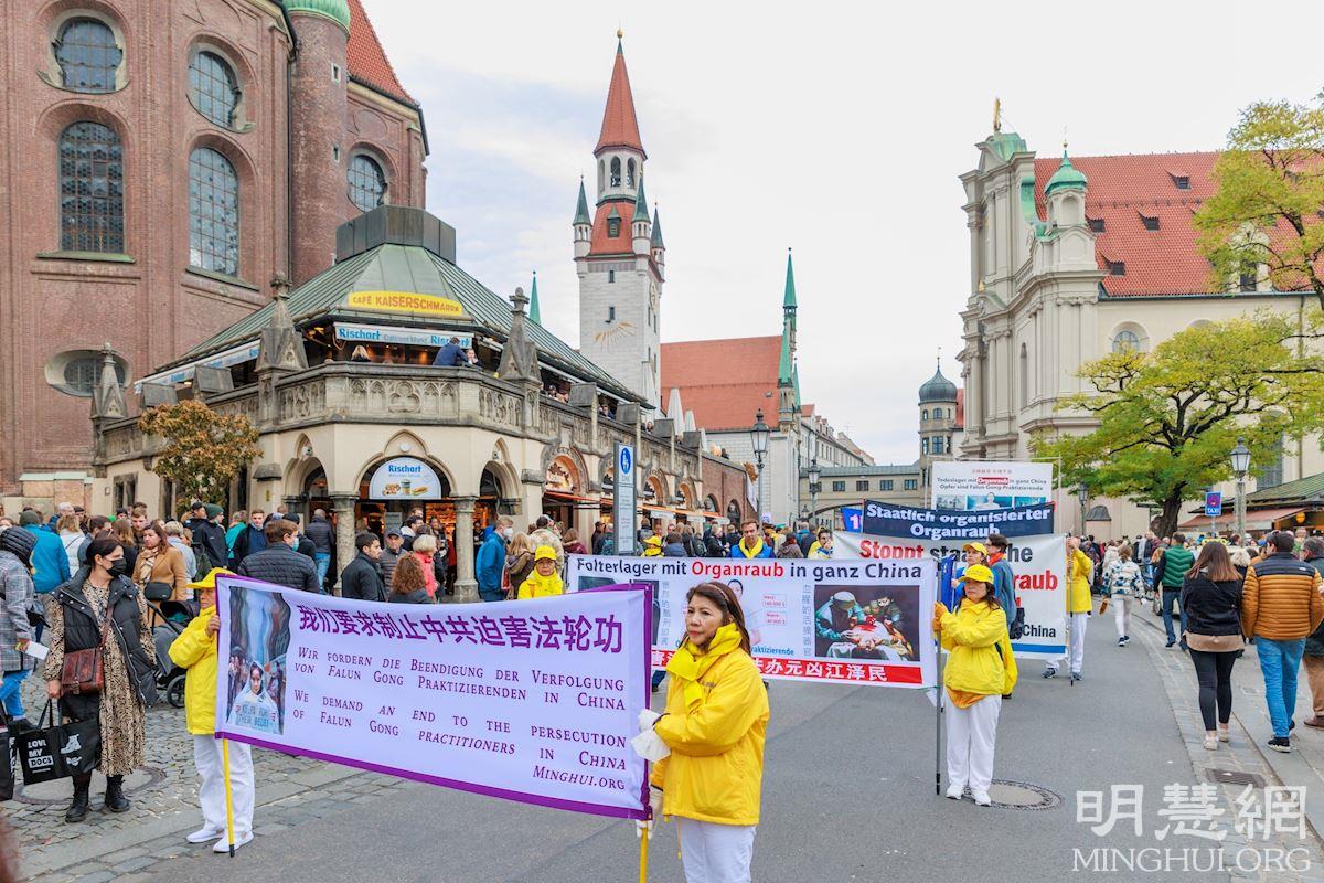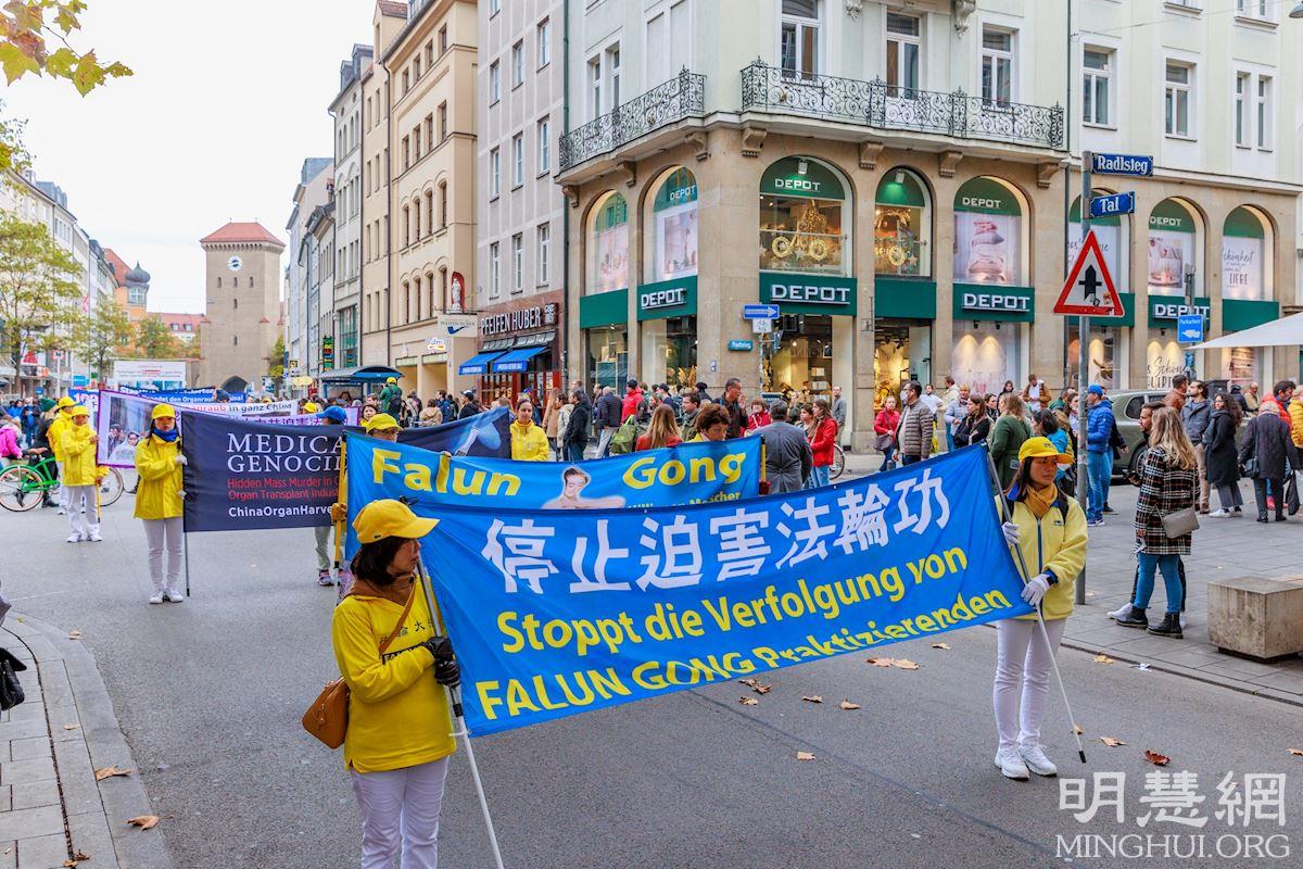 法轮功学员在慕尼黑繁华地段游行,途径慕尼黑王宫、国家剧院、著名奢侈品街马克西米利安大街(Maximilianstraße),还经过慕尼黑第一座城门伊萨门(Isartor)、塔尔大街(Tal)、著名的谷物市场(Viktualienmarkt)和森德灵门(Sendlinger Tor),最后抵达卡尔斯广场(Karlsplatz),受到两旁观众的瞩目。很多路人签名声援法轮功学员反迫害。