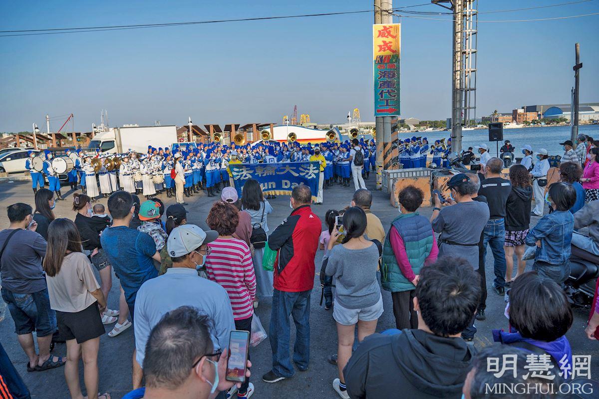 天国乐团宏亮的乐音吸引不少民众涌入,为当地农特产品及观光产业带来人潮和生机。在万象交替之际,鼓乐声声传递着法轮大法真、善、忍的理念,送给民众无价的珍宝。