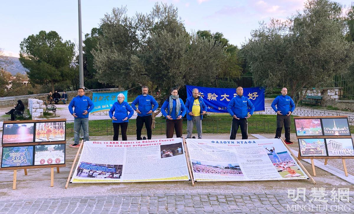 ![]() 图1:二零二一年十二月十日,国际人权日之际,法轮功学员在雅典卫城附近商业街演示功法,揭露中共迫害法轮功的罪行。 |