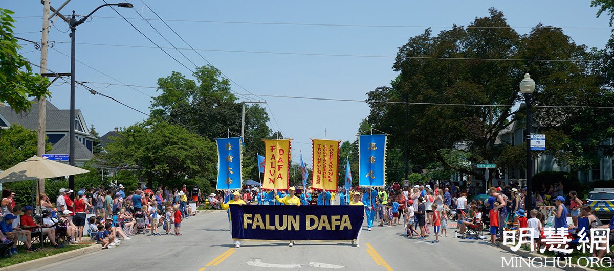 七月四日美国独立纪念日,对美国人来说是表达爱国的日子,也是重要的纪念日。每年这天,全美各地都会举办各种活动庆祝美国生日。二零二一年七月四日是美国独立二百四十五周年纪念日,伊州百年老城惠顿市(Wheaton)在疫情解封后恢复了庆祝独立日的传统。大芝加哥地区部份法轮功学员和一些周边地区学员参加了惠顿市举办的独立日游行,受到当地居民的热烈欢迎。法轮功学员的方阵最后被评为“最佳表演奖”。