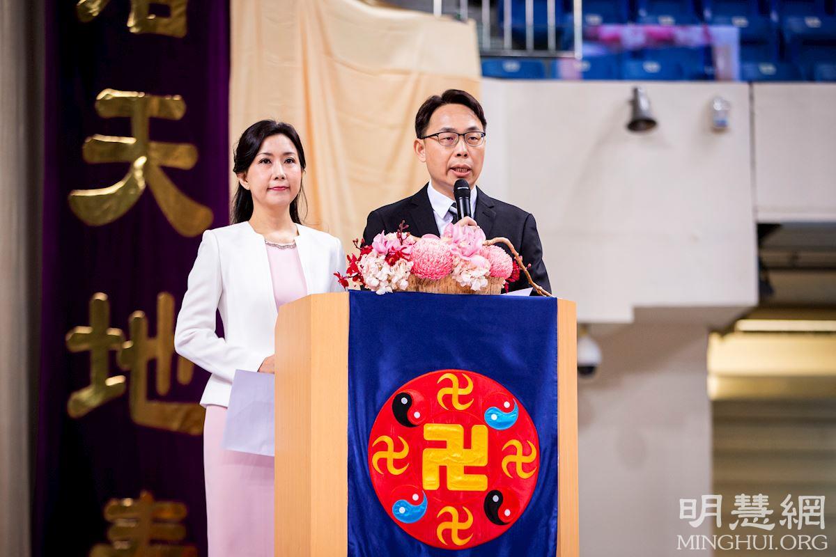 法会开幕后,主持人宣读两遍师尊发来的贺词,全场响起经久不息的热烈掌声。贺词中李洪志师父叮嘱并勉励弟子:“大法弟子学好法、讲真相救人,这是你们来世的目地。无论你们生活在哪一社会阶层都不受影响,即使社会动荡,也不能改变大法弟子的使命。修好自己,救度世人。”[3]