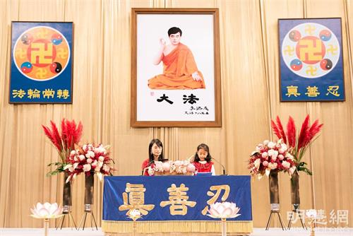 法会开幕后,主持人宣读两遍师尊发来的贺词,全场响起经久不息的热烈掌声。贺词中李洪志师父叮嘱并勉励弟子:“大法弟子学好法、讲真相救人,这是你们来世的目地。无论你们生活在哪一社会阶层都不受影响,即使社会动荡,也不能改变大法弟子的使命。修好自己,救度世人。”[3]