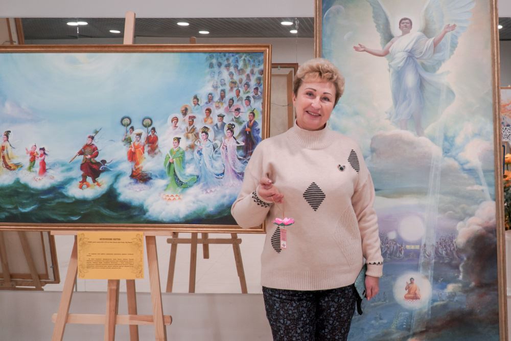 从事会计工作的玛丽娜说:“展览中的一些画作表现出了对法轮功修炼者的迫害问题。其它画作反映了修炼者的日常生活,如何克服一些事情,而在精神上上升,在我看来是成功的。 所有的图片都是积极的,让人了解到所有的困难都会被克服--这是一个时间问题。 例如,女孩将礼物交给长者的那幅画就非常光明。”
