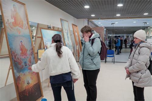 【明慧网二零二一年十二月二十二日】二零二一年十二月十八、十九日在俄罗斯莫斯科市繁华的VDNKh地区周末连续两天举办的真、善、忍美展吸引了年末大批的观光游客。不少人流连忘返,对画展举办方表示感谢。