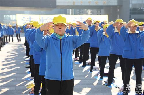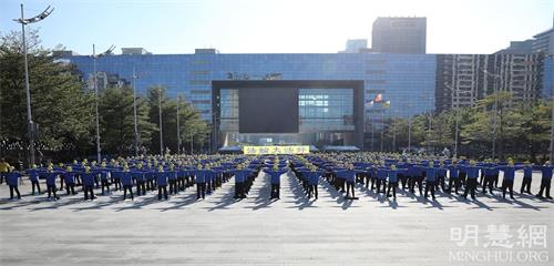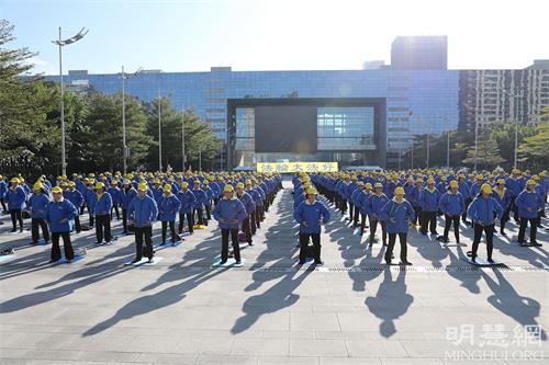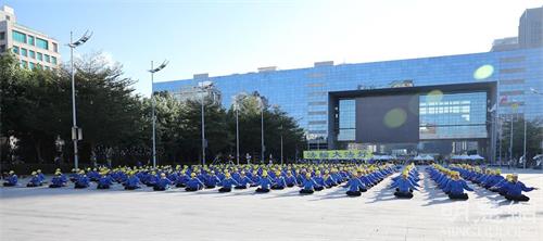 图2~6:二零二一年十二月十二日,大台中地区的法轮功学员在市政府广场上集体炼功,向民众展示五套功法。