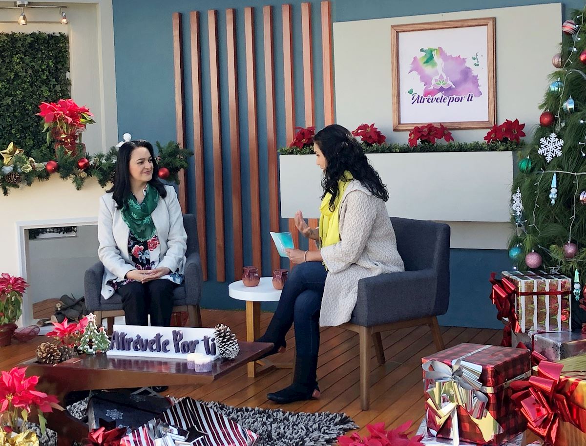 ![]() 图1:墨西哥电视《Dare for you》的电视节目中,主持人利贾·雷耶斯(Ligia Reyes,右)采访詹妮弗·加西亚(Jeniffer García,左)。(图片来源:Mexiquense TV) |