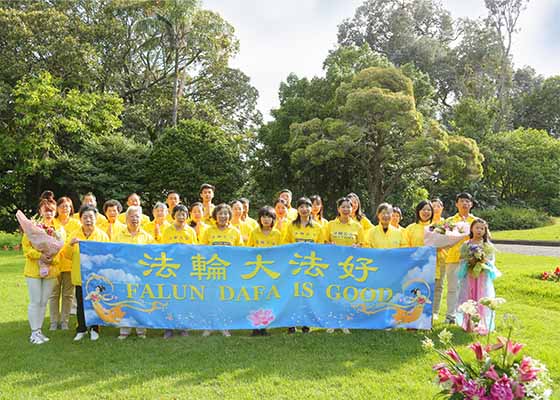 新年来临之际,新西兰法轮功学员聚集在奥克兰区域公园,恭祝师尊新年快乐。学员们感恩师父洪传大法,让他们明白了人生的真正意义。