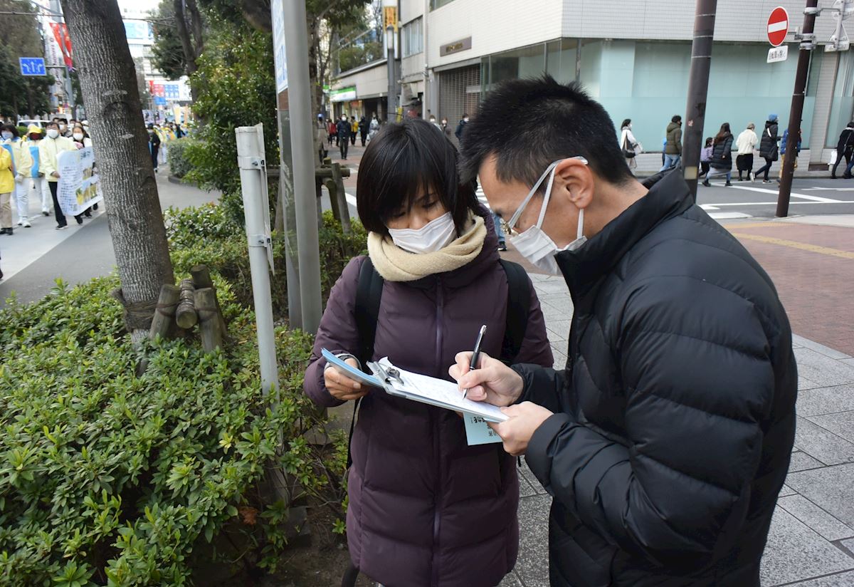 游行队伍一路经过多个池袋繁华街区,都是东京华人聚居的地方,引来了众多路人关注。人们纷纷接过学员派发的真相资料,了解到了法轮大法的美好,以及中共迫害的残酷。