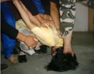 ![]() 酷刑示意图:抓头撞水泥地 |