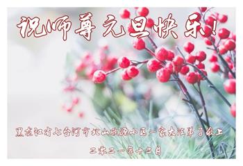 值此新年佳节之际,恭祝师父新年快乐!感谢师父的慈悲救度!弟子们谨记师父的教诲,正念正行,义无反顾的走好正法修炼之路!