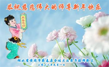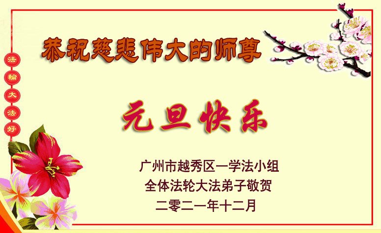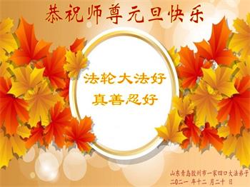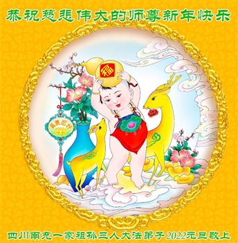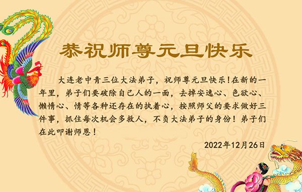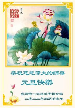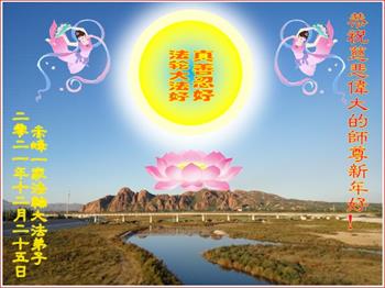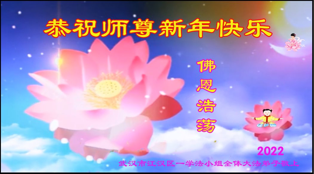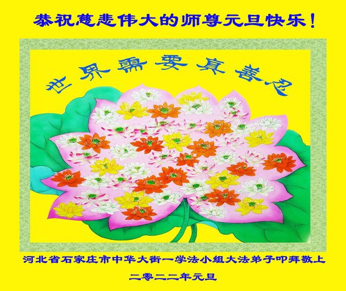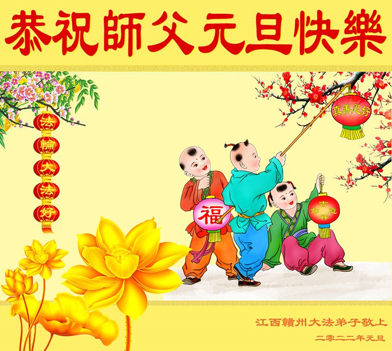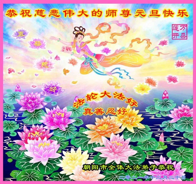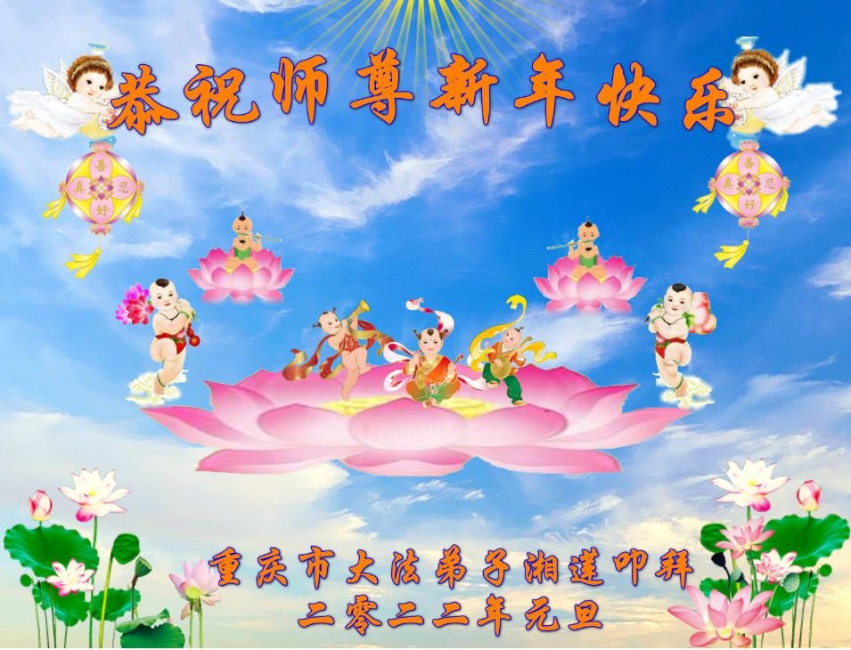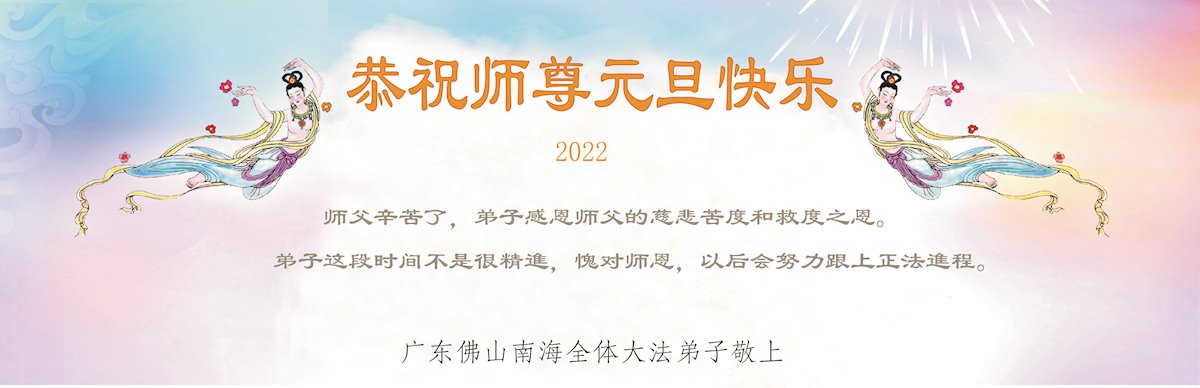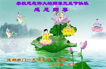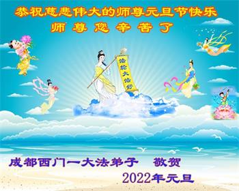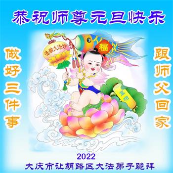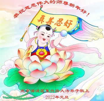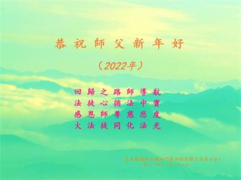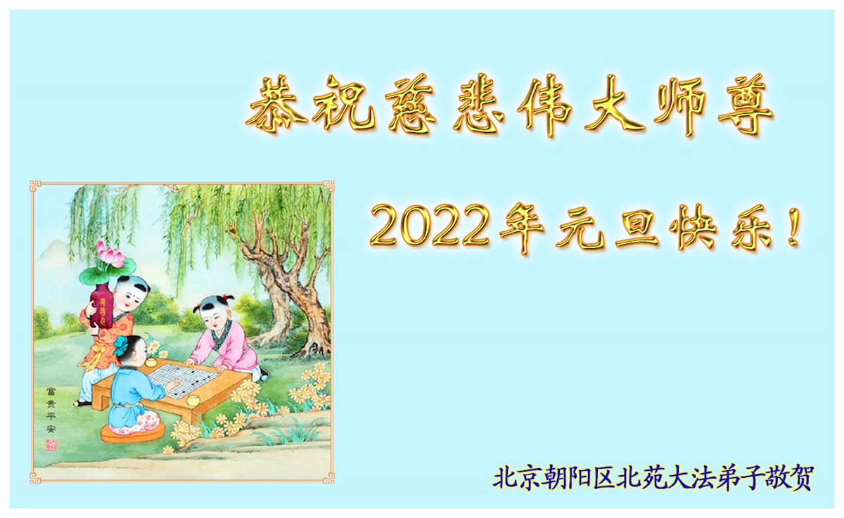 在二零二二年元旦即将到来之际,在这辞旧迎新的节日里,沐浴在法轮大法浩荡佛恩中的中国大陆大法弟子们想念李洪志师父,遥拜师尊元旦佳节快乐!二十九年前,师尊传大法,不重形式,只见人心,大法弟子遍布中国各行业,把法轮大法的美好传播到各个领域,给社会道德的回升带来一股股清流。