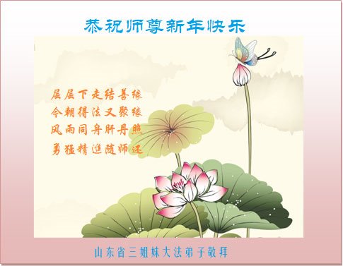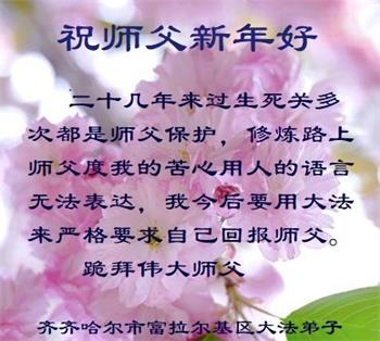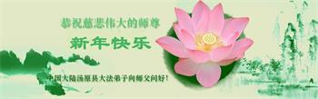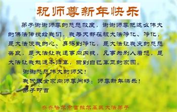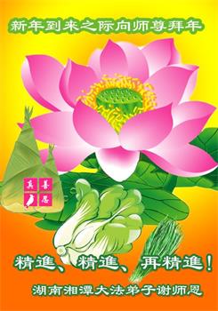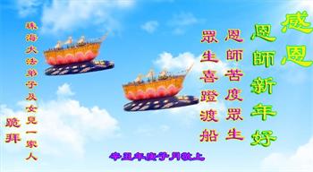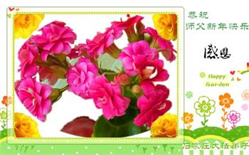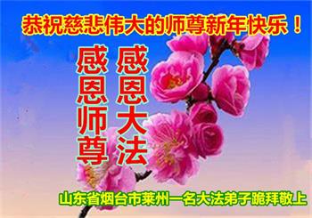 这一年,世事纷乱,个人的工作生活也面临很多困难。通信行业的工作压力常常使自己无所适从。通过坚持学法,内心找到了宁静,工作中学会替同事着想,为客户着想;生活中学会了礼让他人;通过炼功,也使身体得到改善。值此新年佳节之际,祝师父新年快乐!弟子会紧跟师父的正法進程,抓紧时间给更多的善良人讲清大法真相,从而得救度。