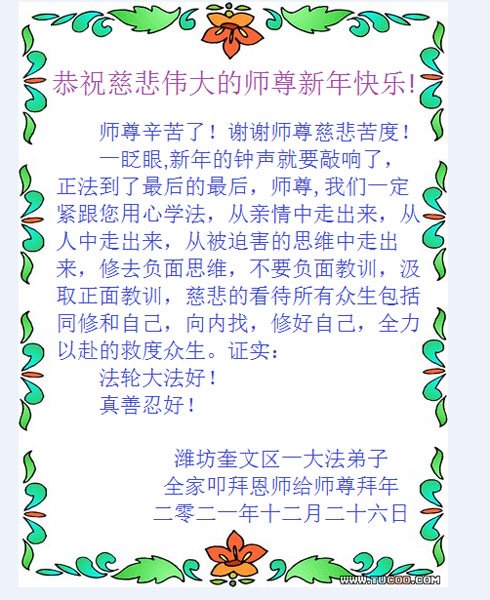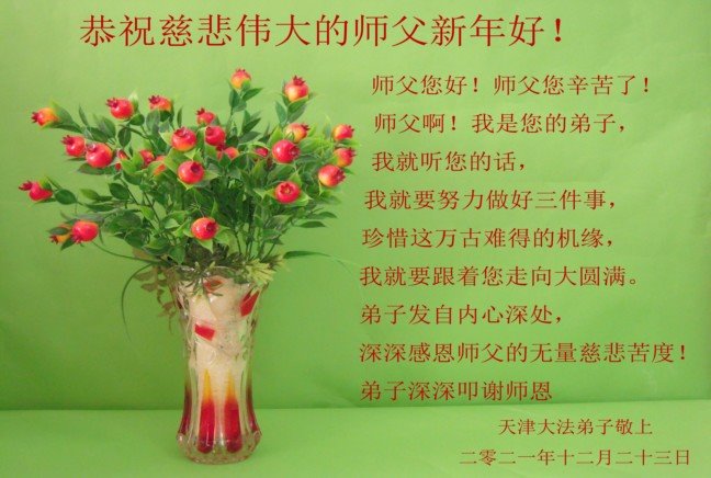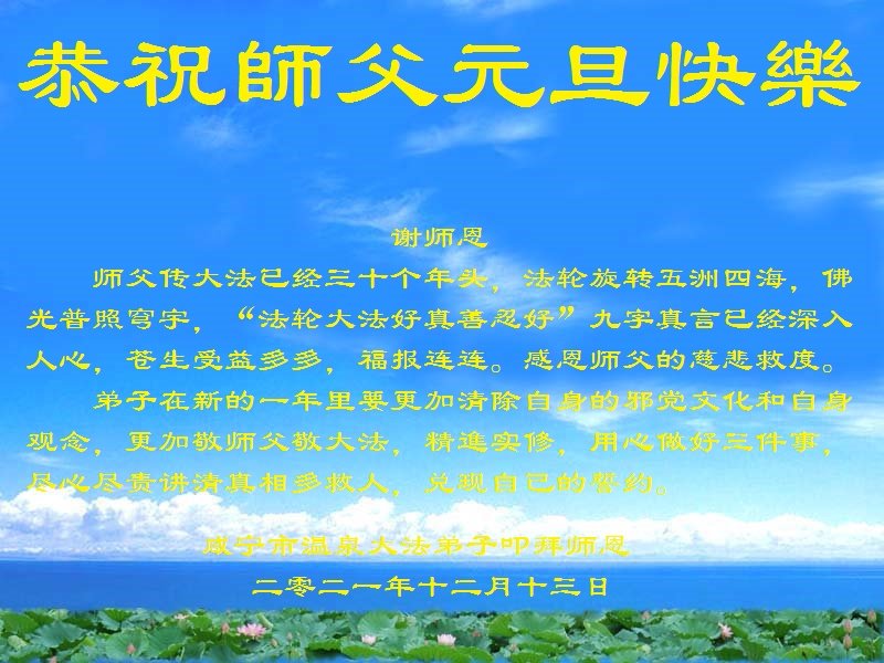 <英文版: http://en.minghui.org/html/articles/2021/12/30/197248.html>中国大陆青年大法弟子遥祝师父元旦快乐