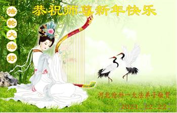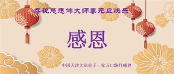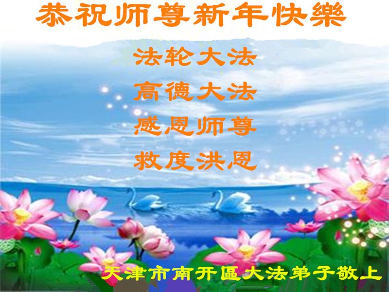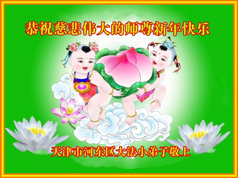 天津市一学法小组的青年大法弟子恭祝慈悲伟大的师尊新年快乐!“弟子们一定要修好自己,不辜负师尊的慈悲苦度。用善的力量救人,按照师父的宇宙大法真善忍做,精進实修,救更多人。”