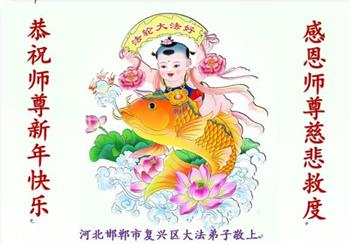天津市滨海新区大港学法组青年大法弟子恭祝慈悲伟大的师尊新年快乐!师父辛苦了!