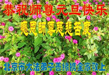 我是北京外交系统大法弟子,值此2022新年即将到来之际,我们全家恭祝慈悲伟大师尊新年快乐!弟子将全力做好三件事,不论世事如何动荡,坚修大法心不动,保持修炼如初的状态。