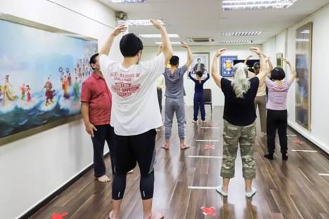 【明慧网二零二一年十二月二十九日】二零二一年十二月十一日至十九日,新加坡法轮佛学会再度举办了九天免费教功班。在这九天里,新学员们观看了法轮大法创始人李洪志先生的讲法录像,并学炼了五套功法。
