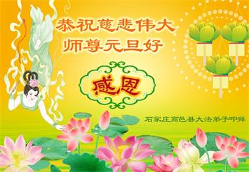 河北省石家庄市大法弟子恭祝师尊元旦快乐!在新的一年里,弟子会继续做好三件事,学好法,修好自己,多救人。愿师尊笑。