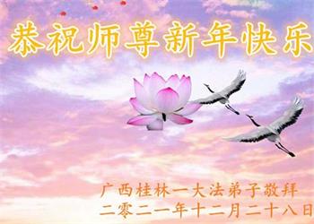 在二零二二年新年到来之际,来自全国各地的明真相百姓感谢李洪志大师将大法洪传于世,给人们带来希望,恭祝李大师元旦快乐!