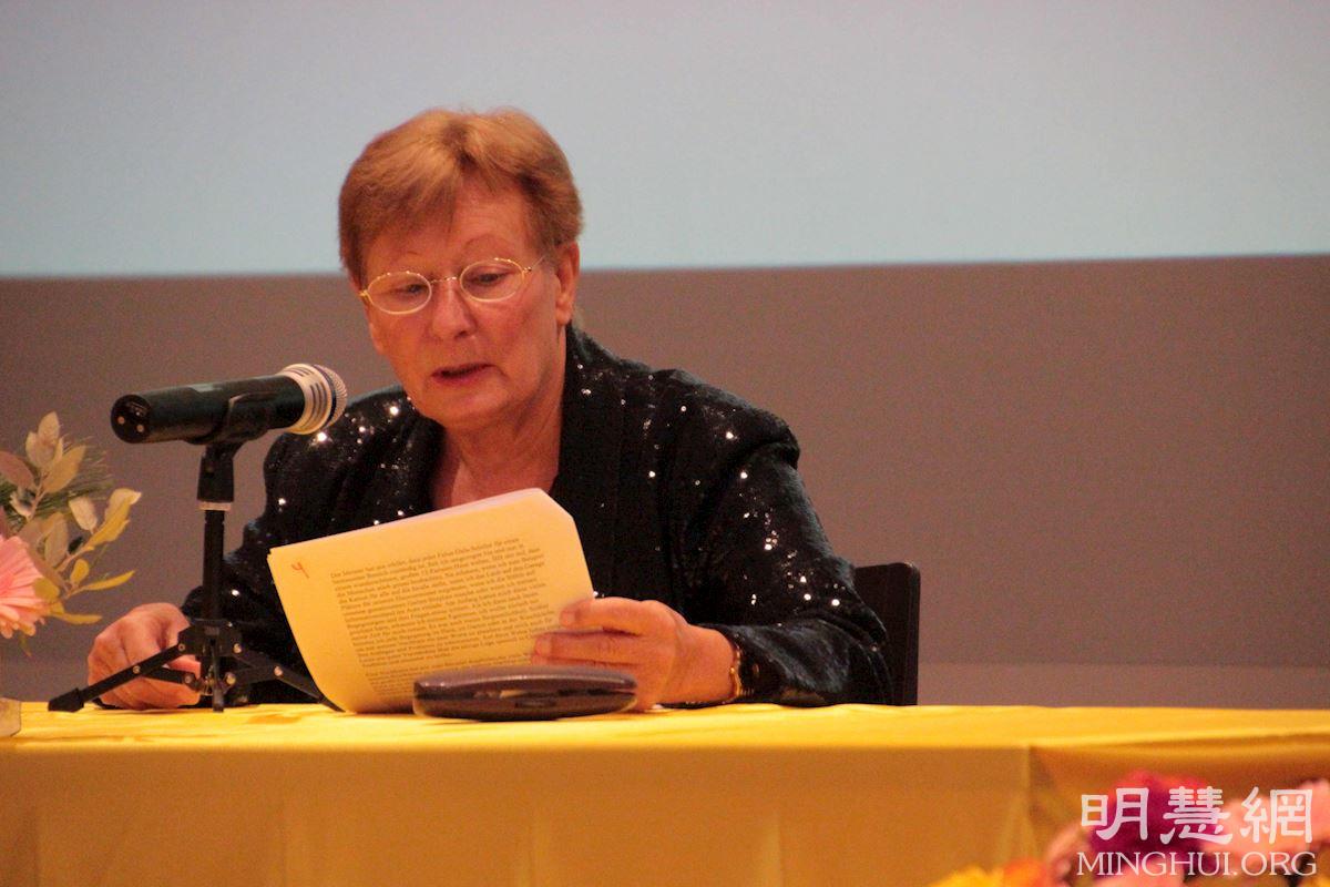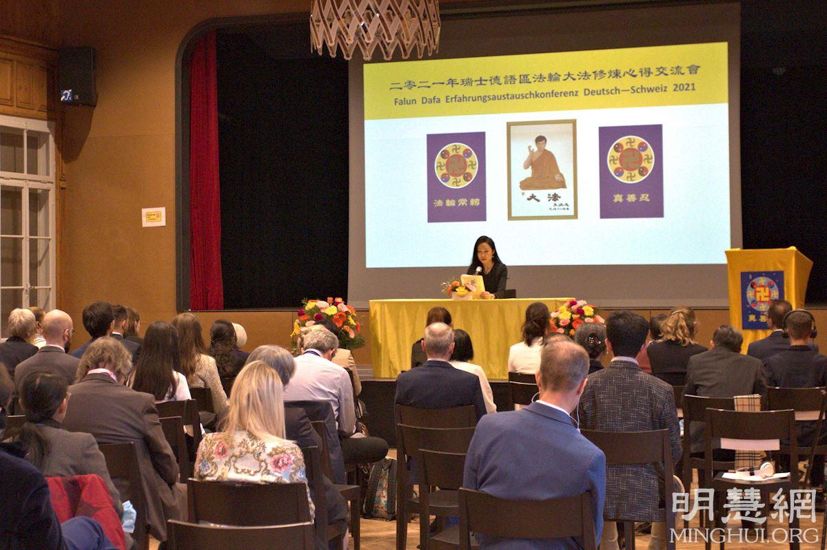在法会上,年过七旬的乌苏拉(Ursula)交流了自己在搬入新居后,发现邻居们默默地观察她为大家和房东做的点点滴滴,还会向她提问。刚开始时,她极不习惯,但意识到这也是私的表现,于是放下这个“私”,去关心他们,并利用与邻居碰面的机会,向他们讲述法轮功的真相,及中共迫害善良民众的所作所为。