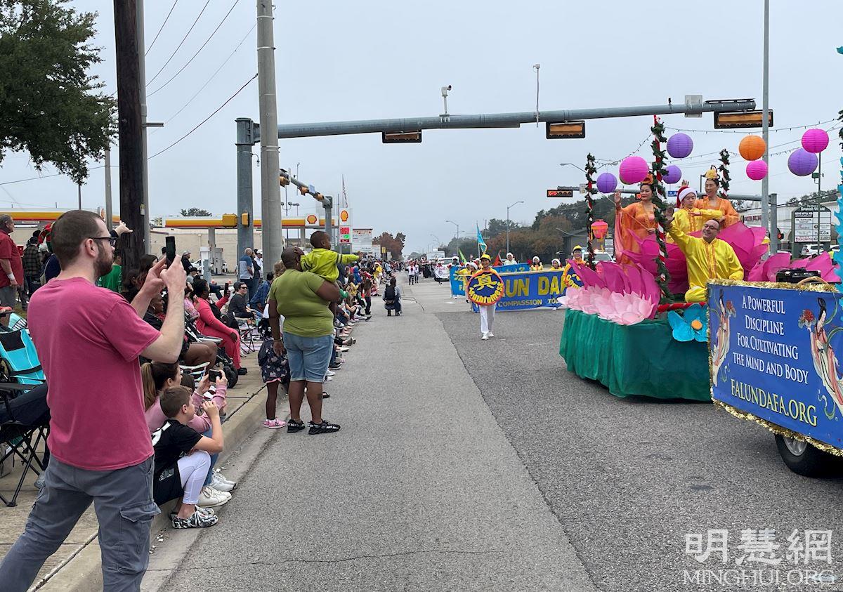 ![]() 图5~7:法轮功学员的队伍在李察逊市的圣诞大游行受到人们的欢迎 |