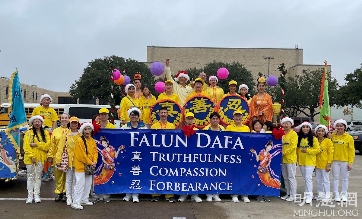 ![]() 图1~3:达拉斯地区法轮功学员参加李察逊市第四十九届圣诞大游行 |