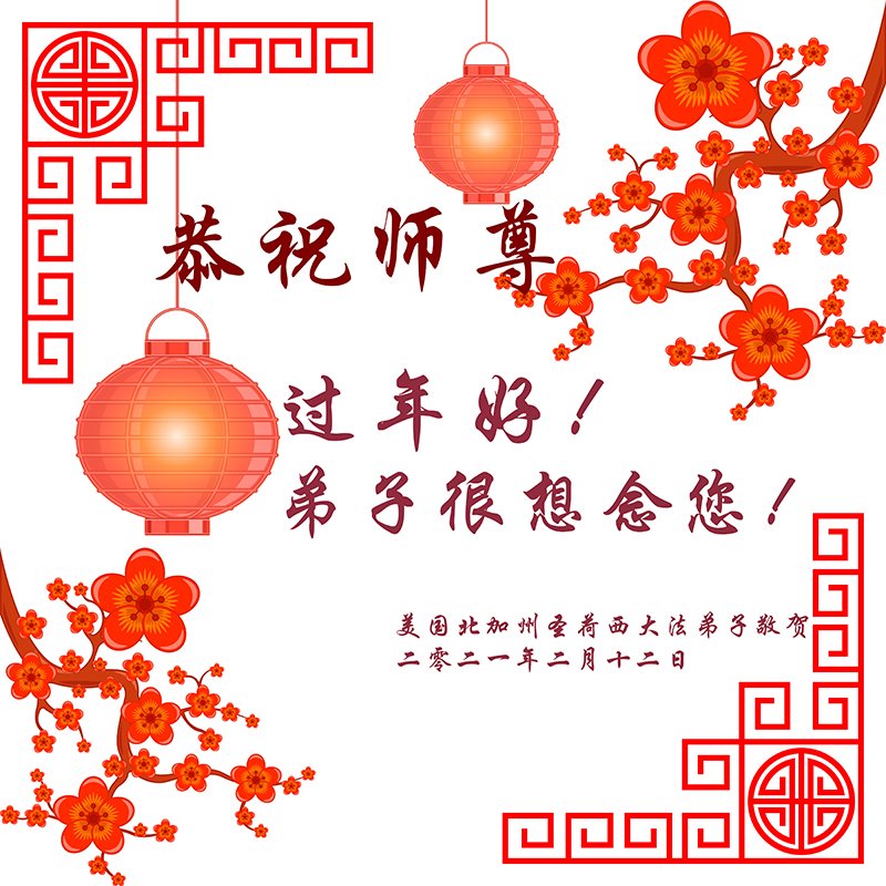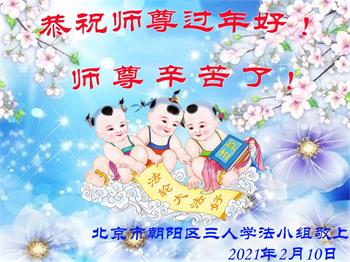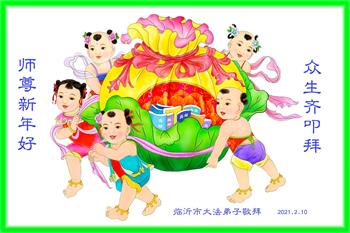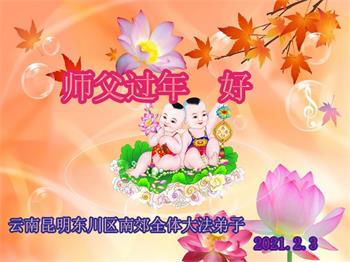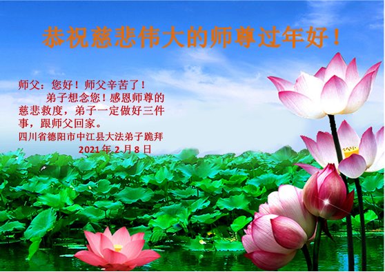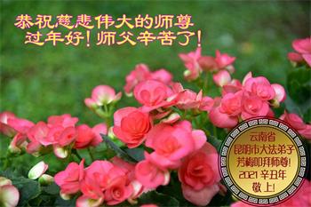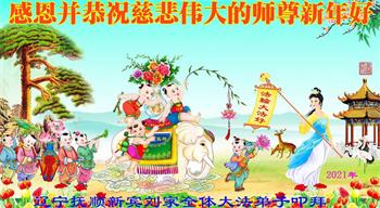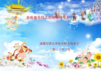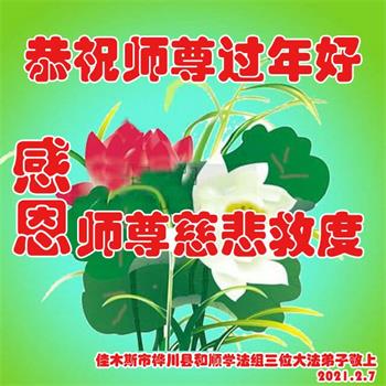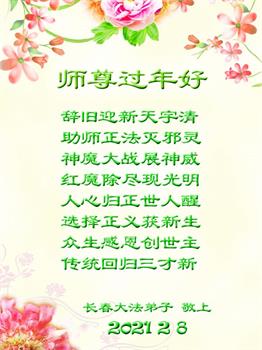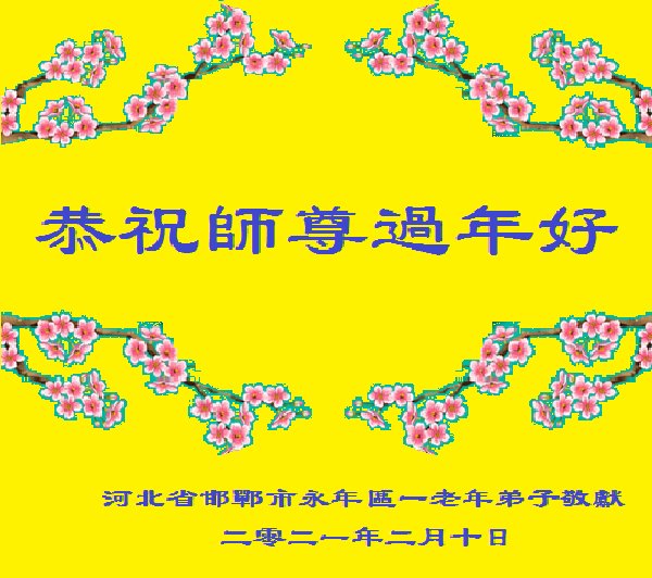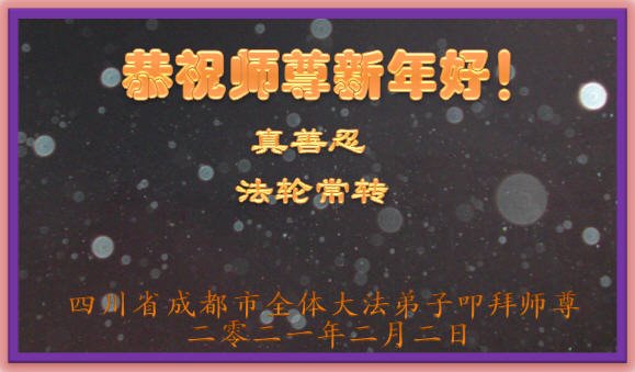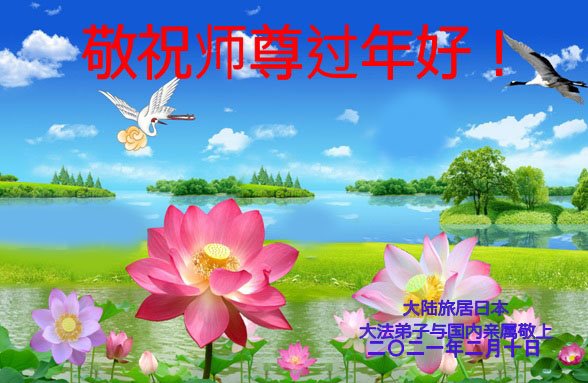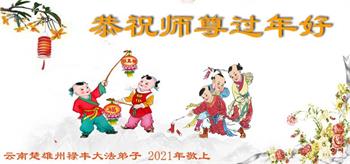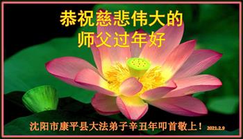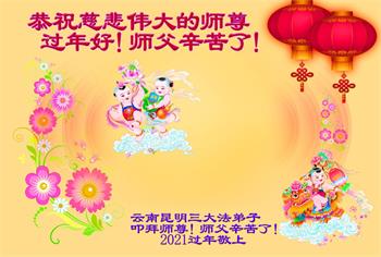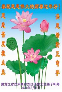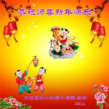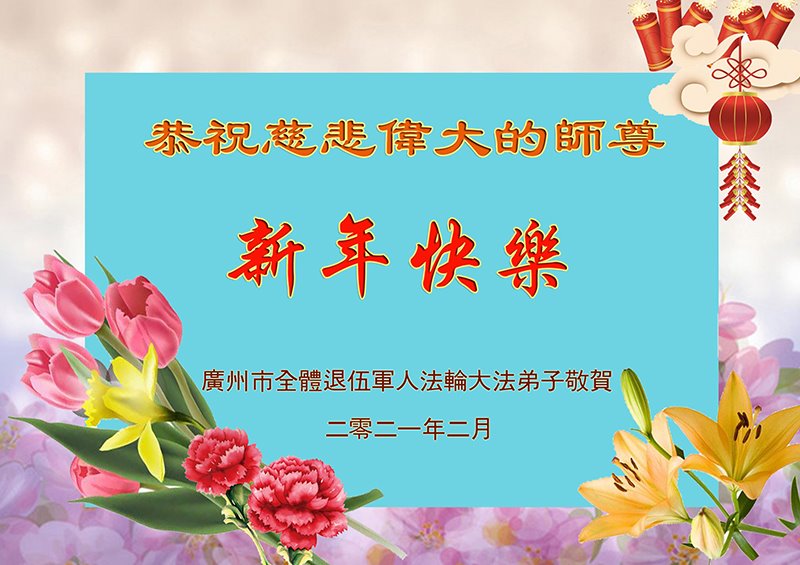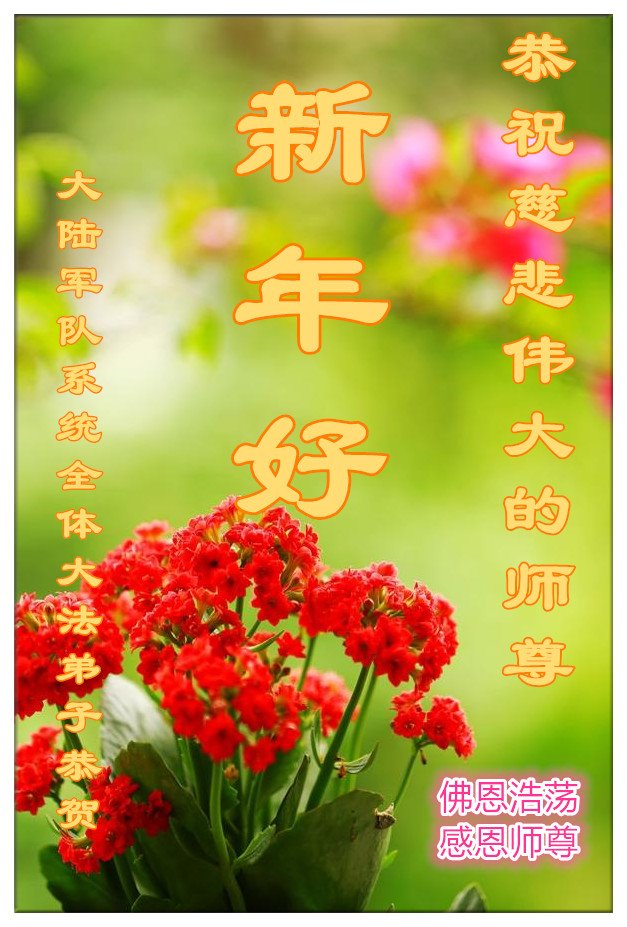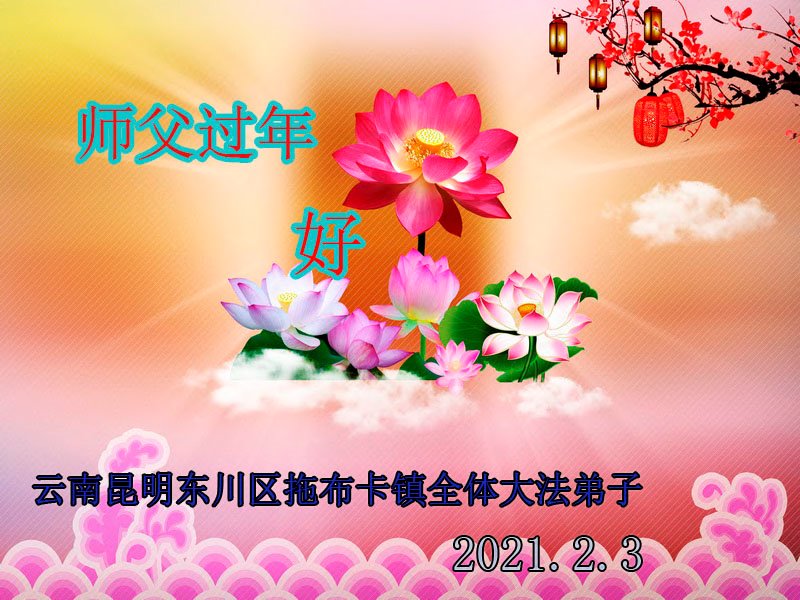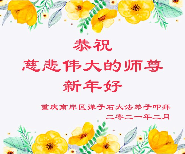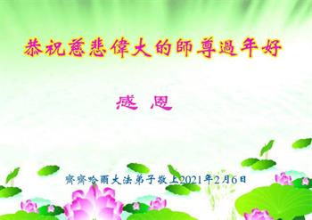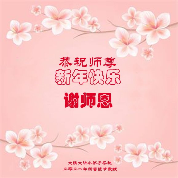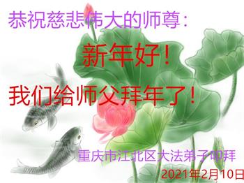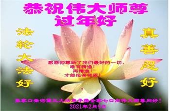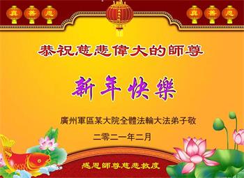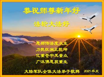中国各军区、兵种大法弟子给师尊拜年 【明慧网二零二一年二月十二日】辛丑年新年到了,中国大陆各军区、兵种的大法弟子们恭祝伟大的李洪志师尊过年好!