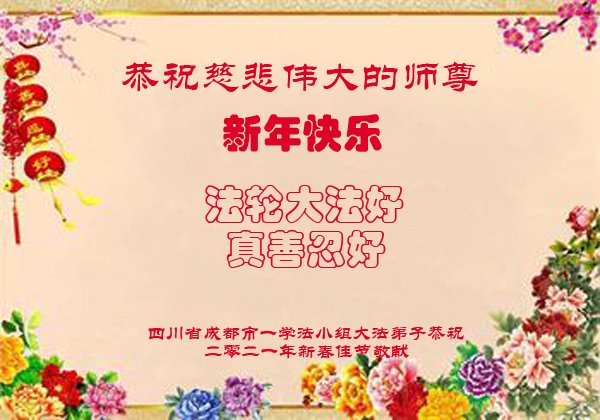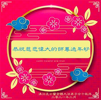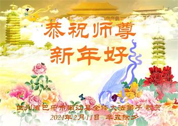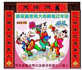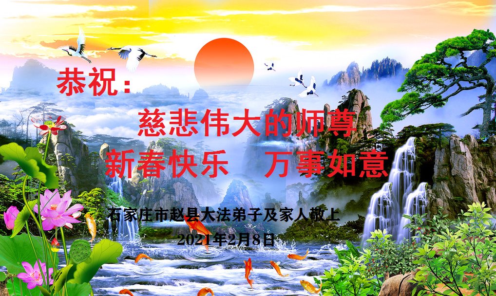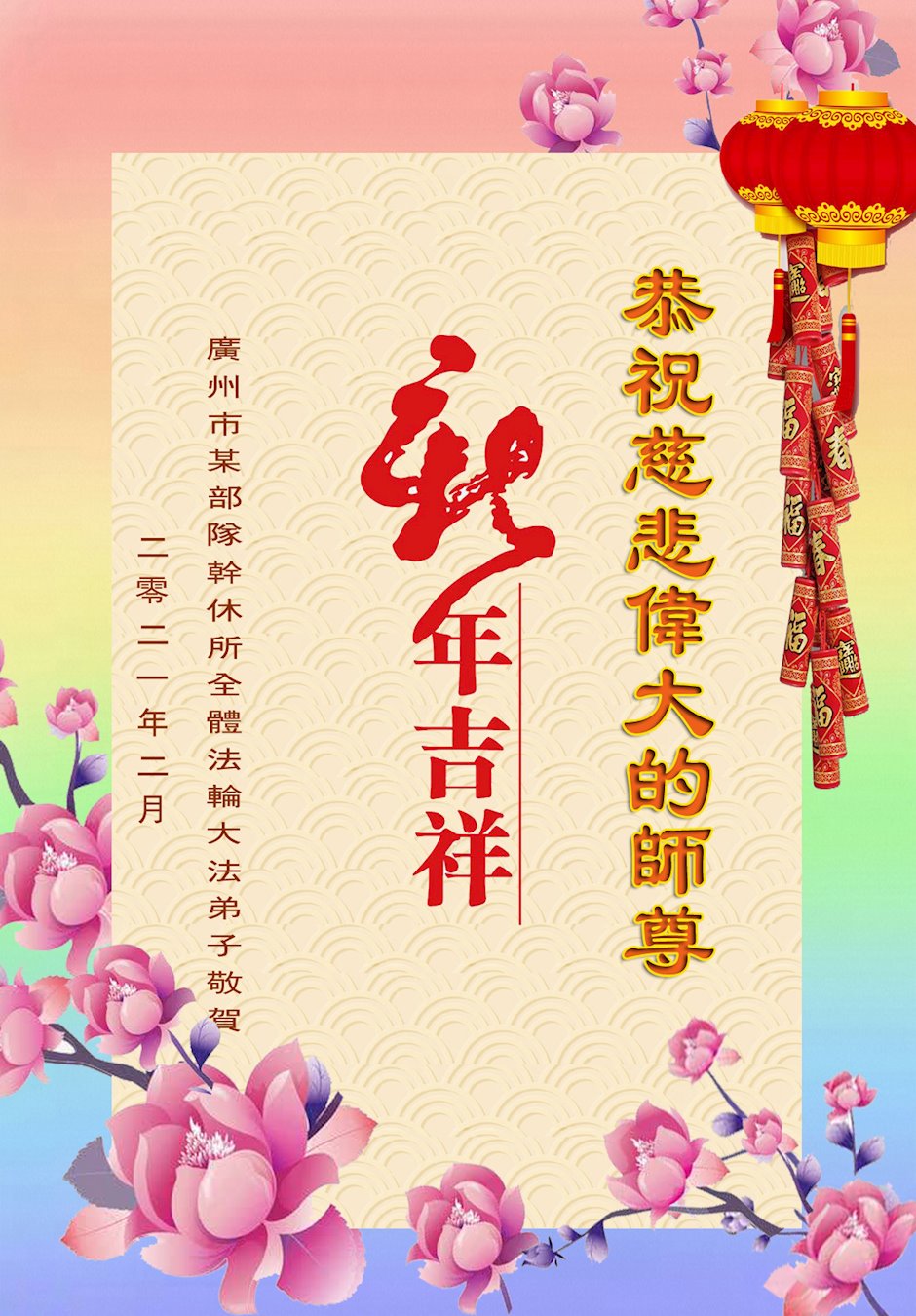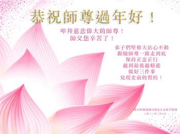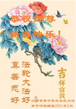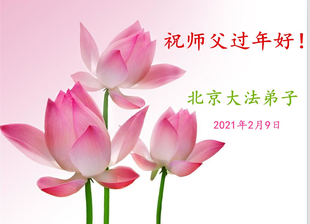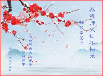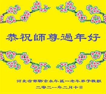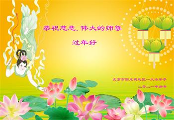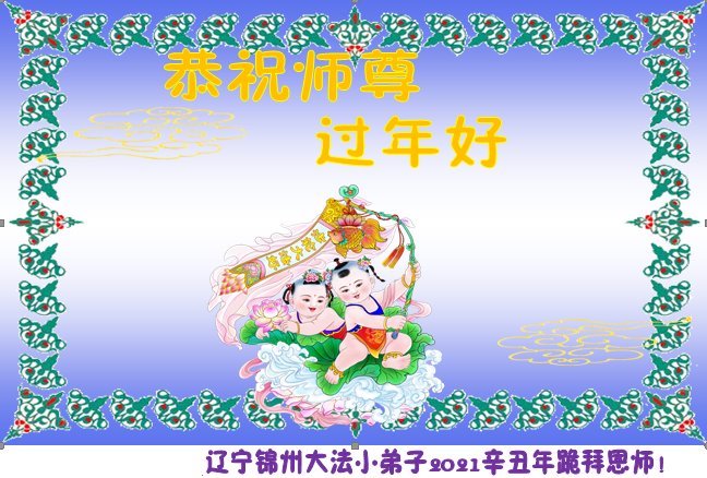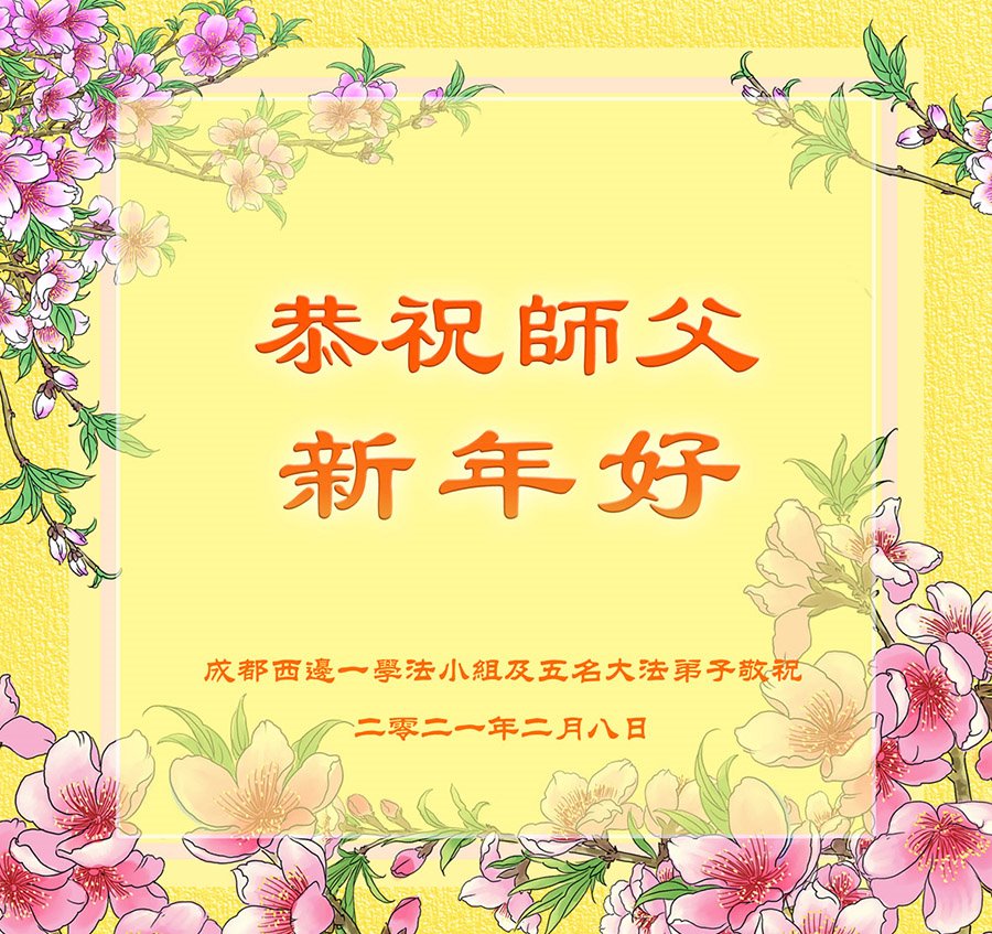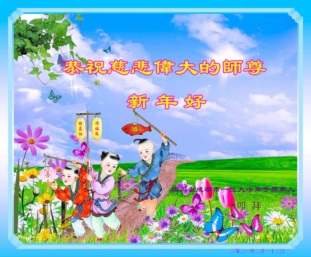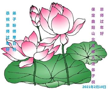 中国各军区、兵种大法弟子给师尊拜年 【明慧网二零二一年二月十二日】辛丑年新年到了,中国大陆各军区、兵种的大法弟子们恭祝伟大的李洪志师尊过年好!