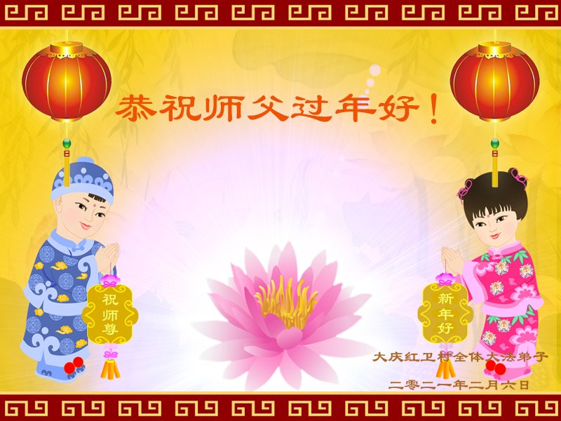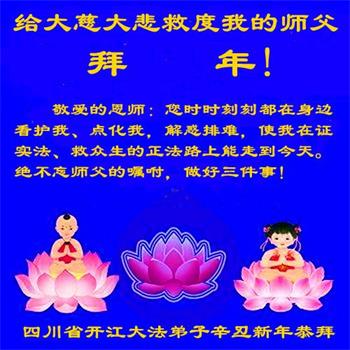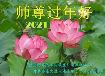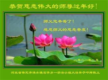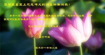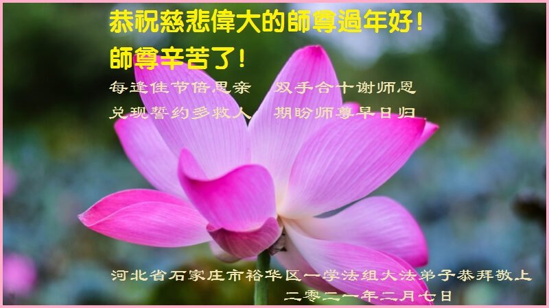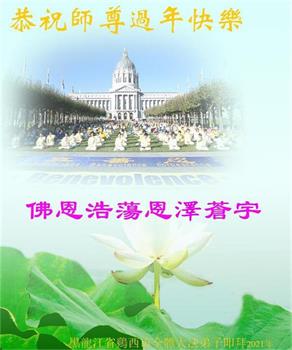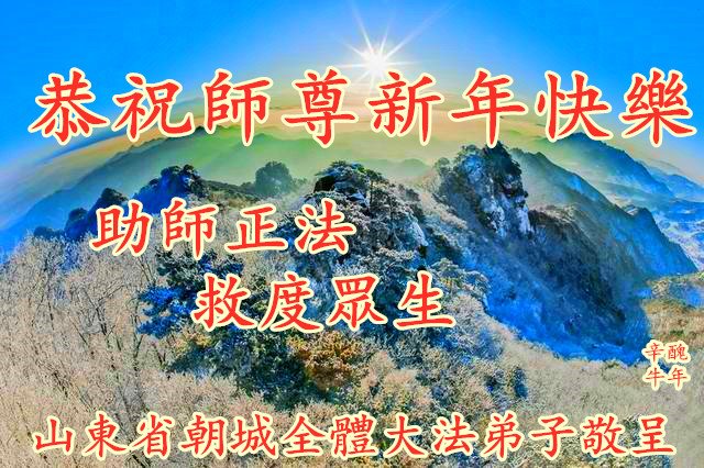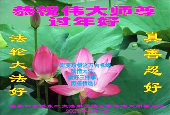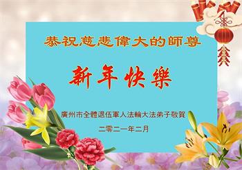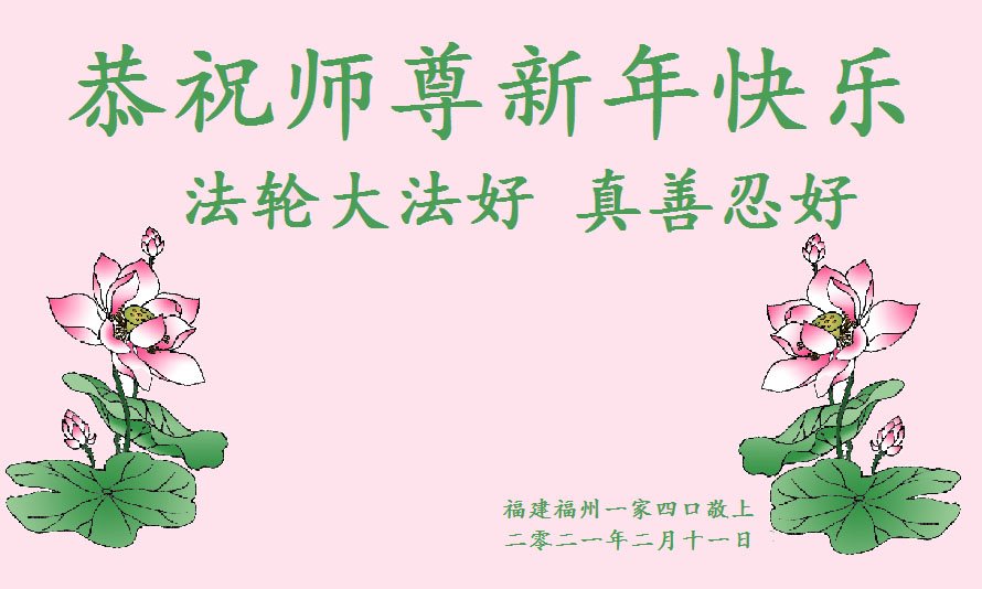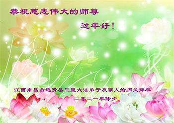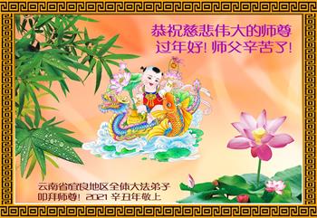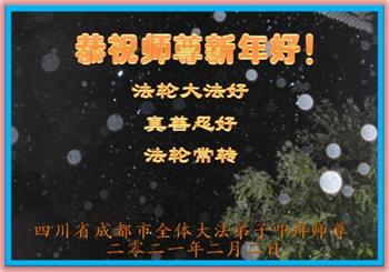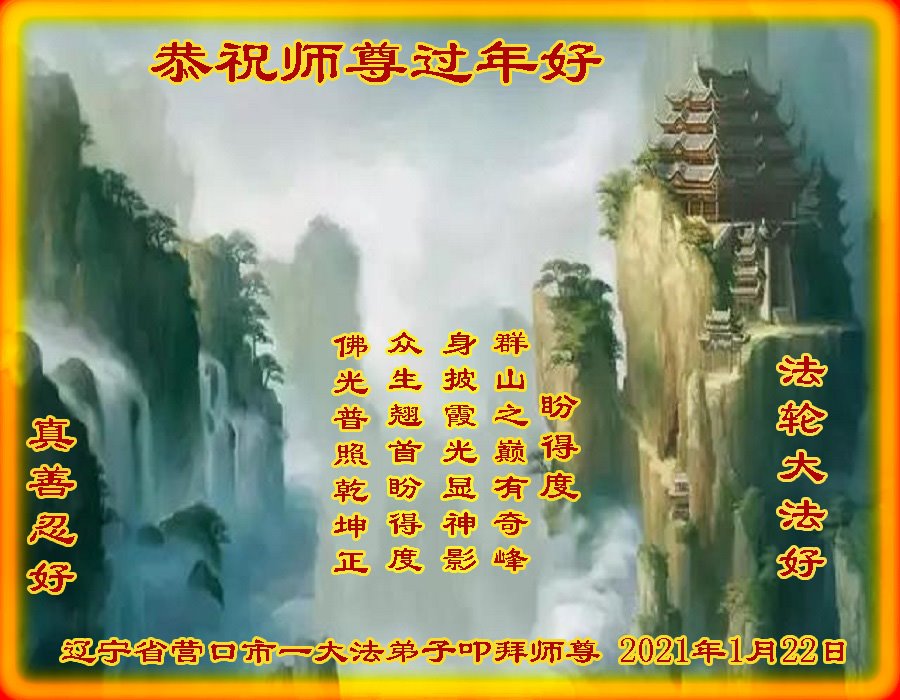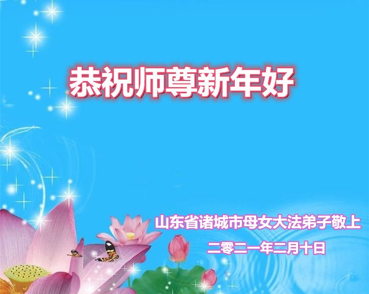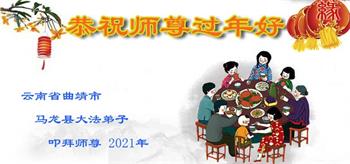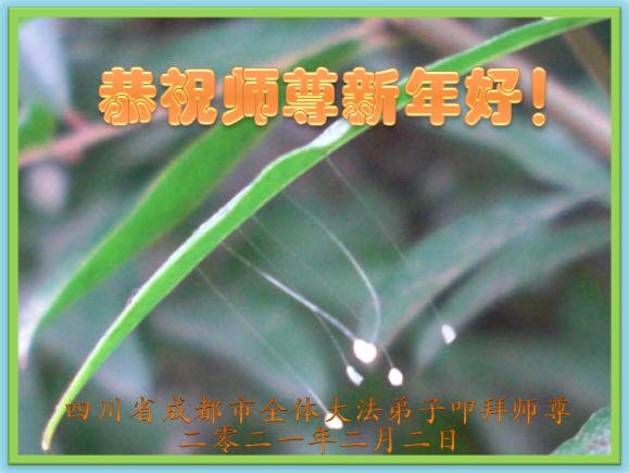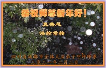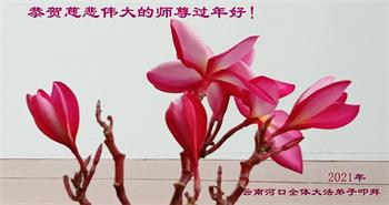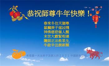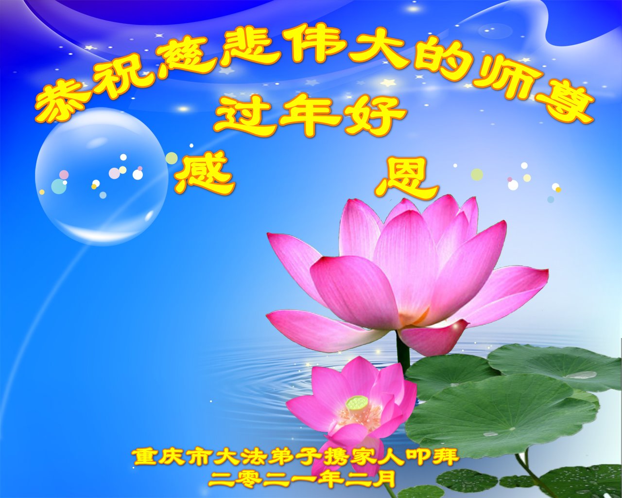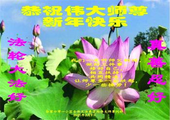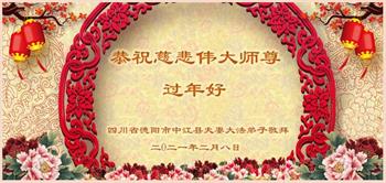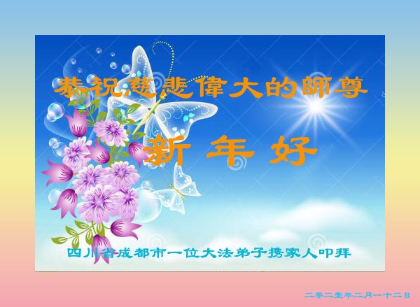 中国各军区、兵种大法弟子给师尊拜年 【明慧网二零二一年二月十二日】辛丑年新年到了,中国大陆各军区、兵种的大法弟子们恭祝伟大的李洪志师尊过年好!