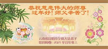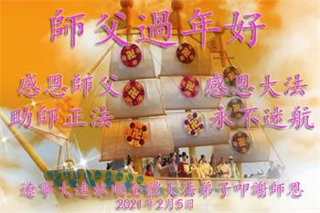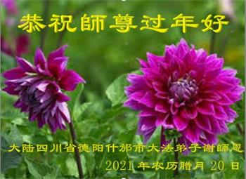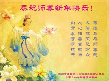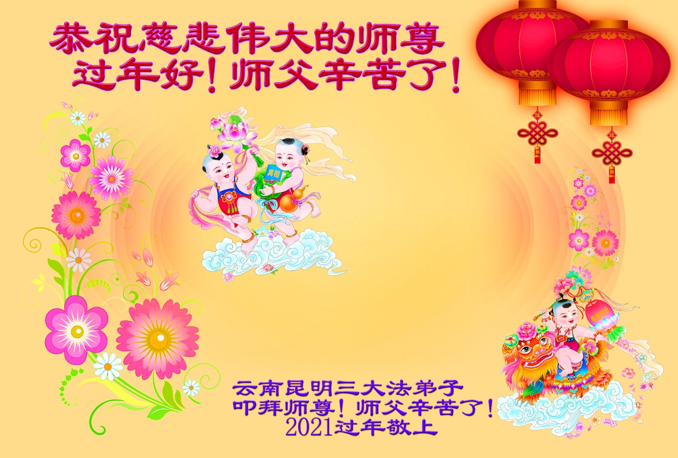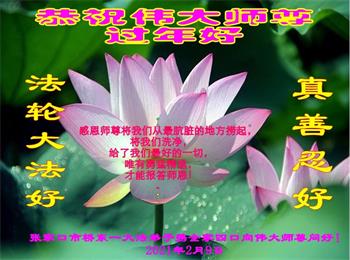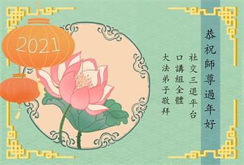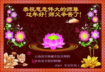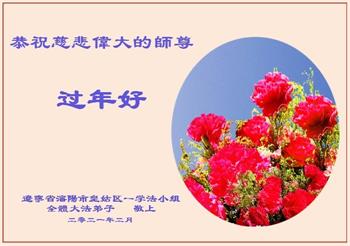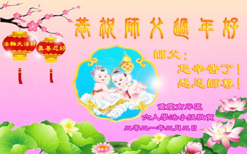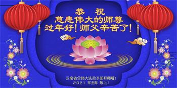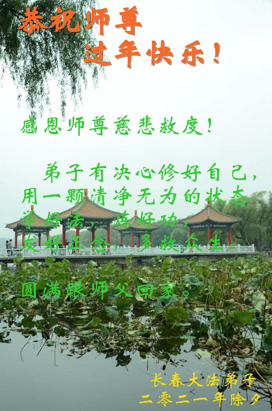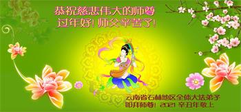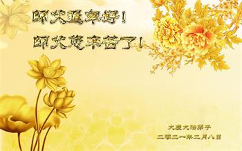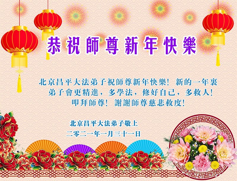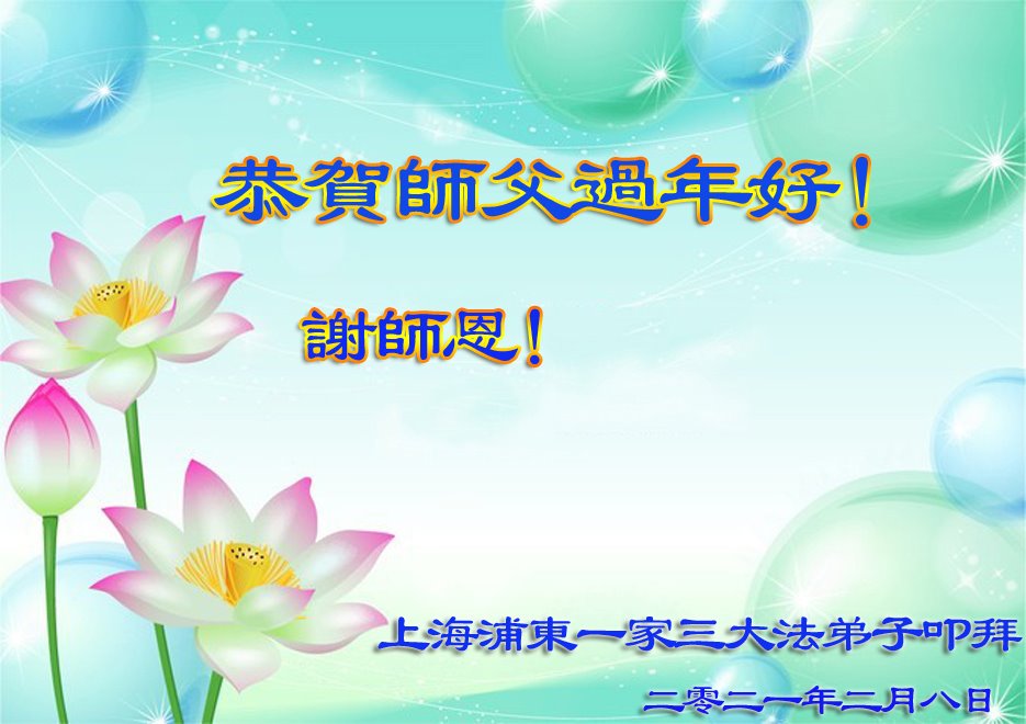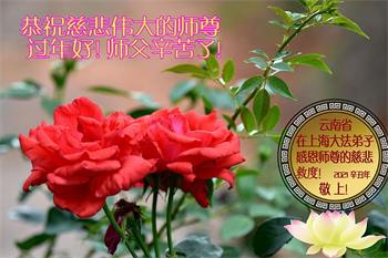 中国各军区、兵种大法弟子给师尊拜年 【明慧网二零二一年二月十二日】辛丑年新年到了,中国大陆各军区、兵种的大法弟子们恭祝伟大的李洪志师尊过年好!