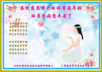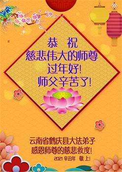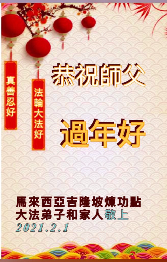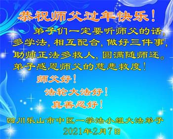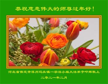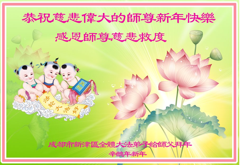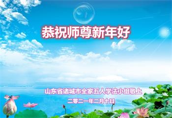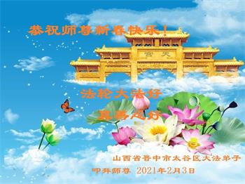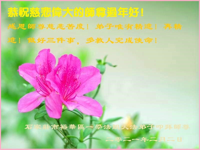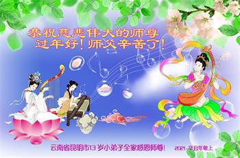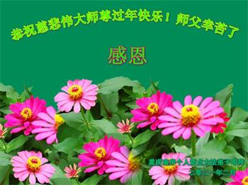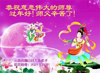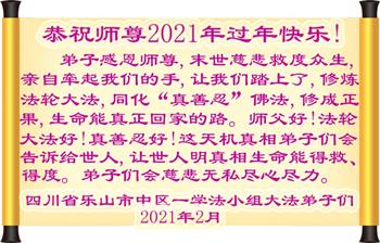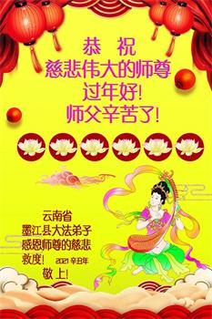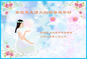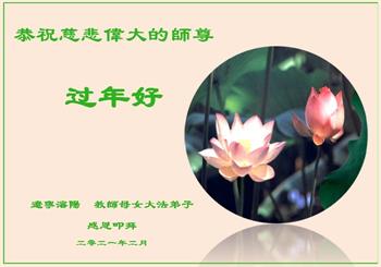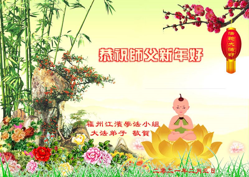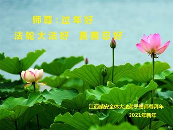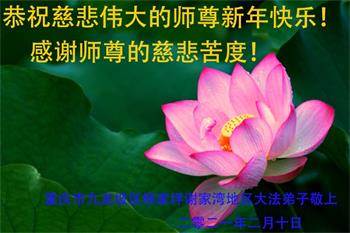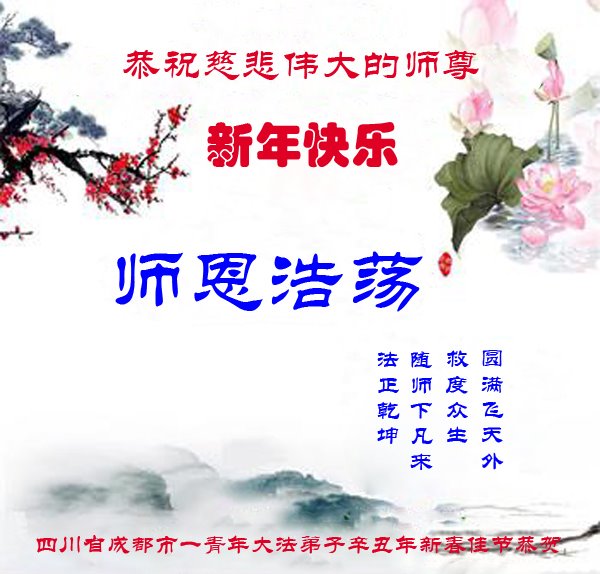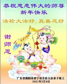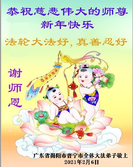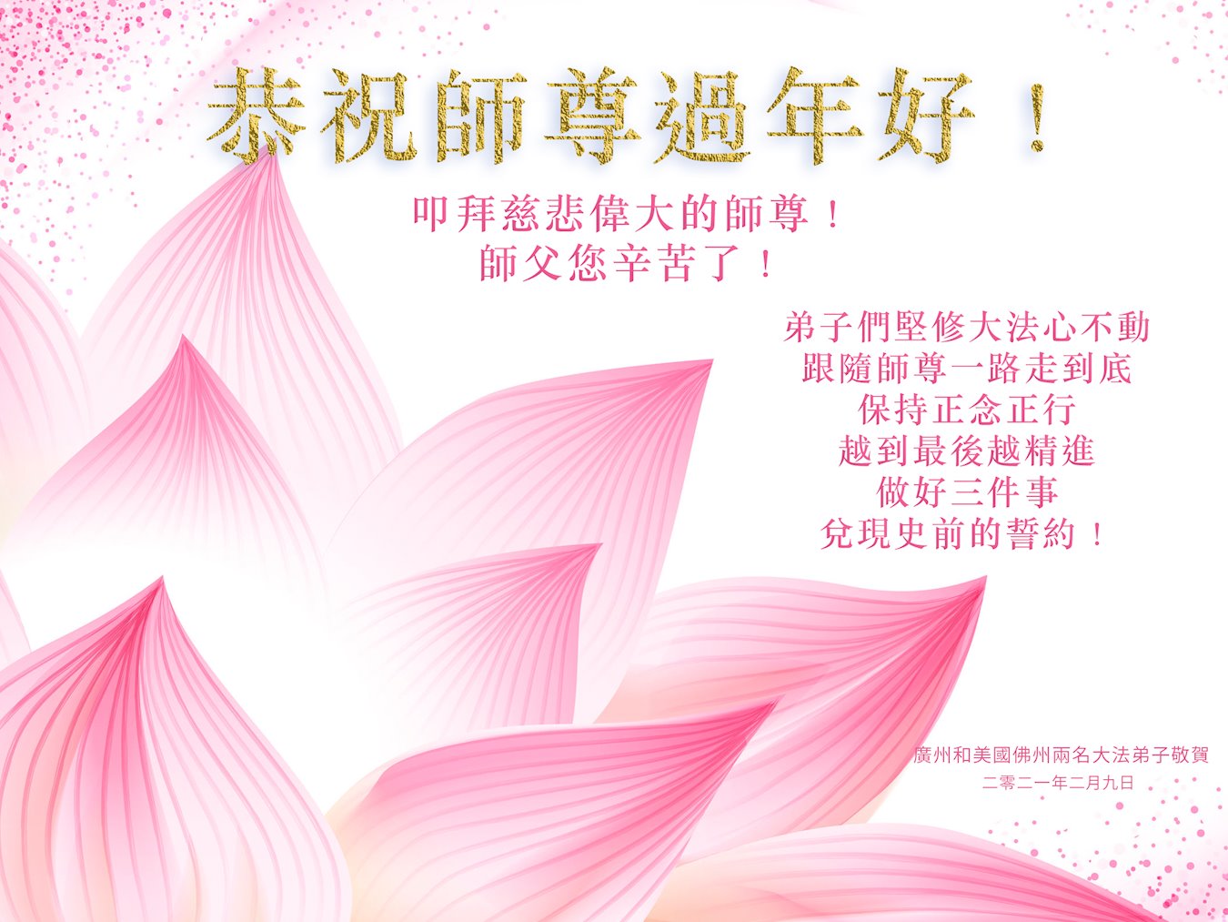 中国各军区、兵种大法弟子给师尊拜年 【明慧网二零二一年二月十二日】辛丑年新年到了,中国大陆各军区、兵种的大法弟子们恭祝伟大的李洪志师尊过年好!
