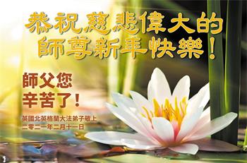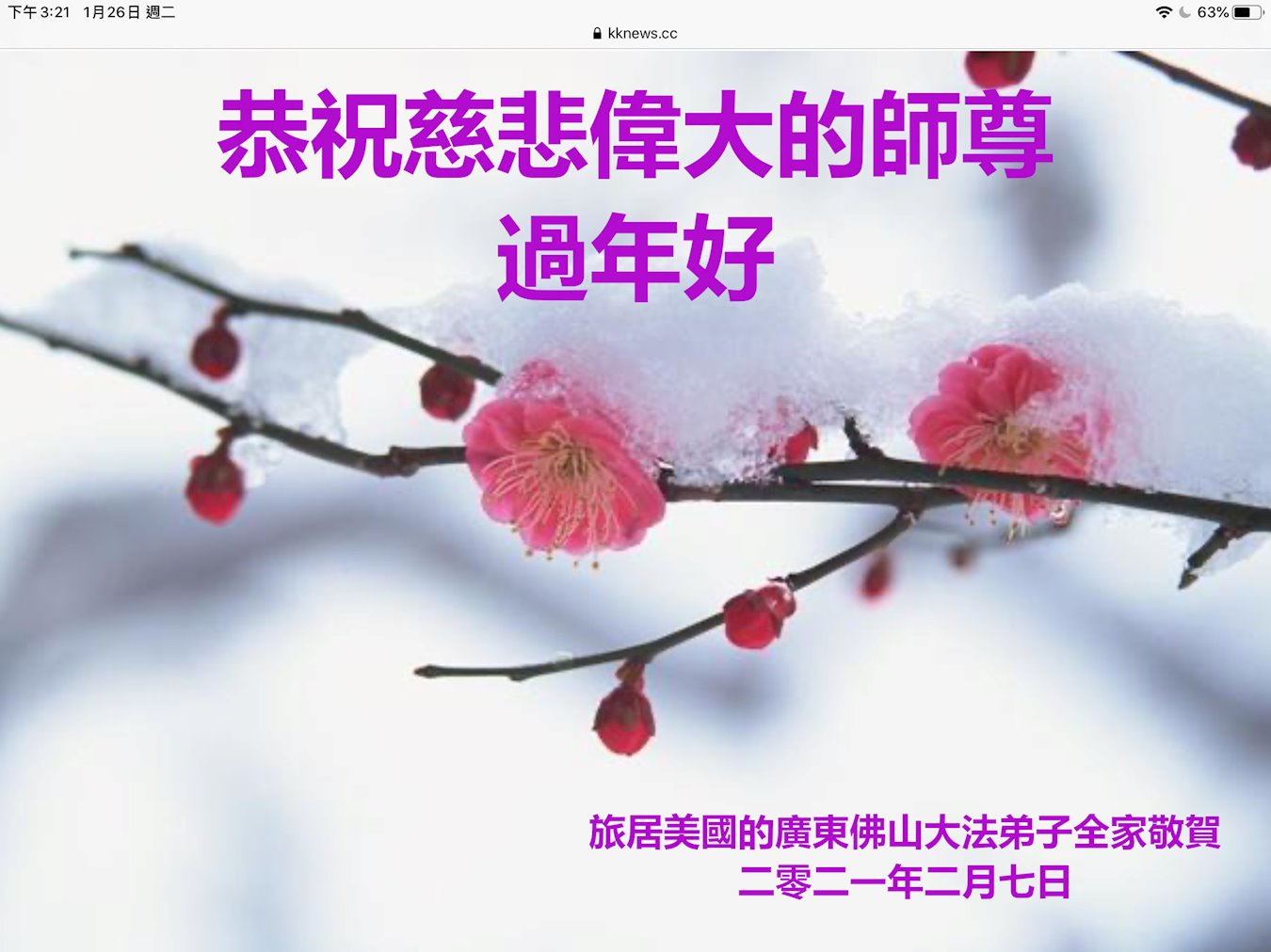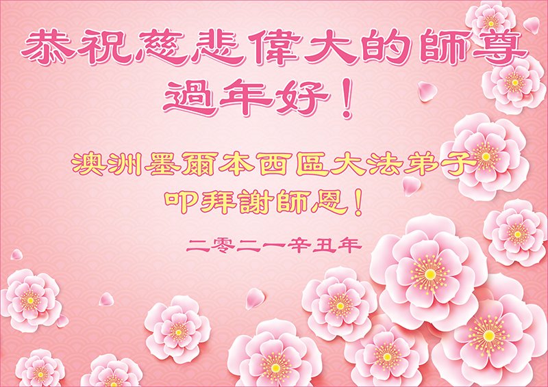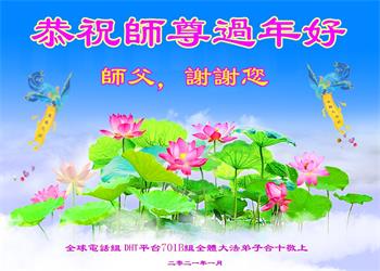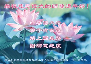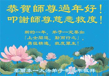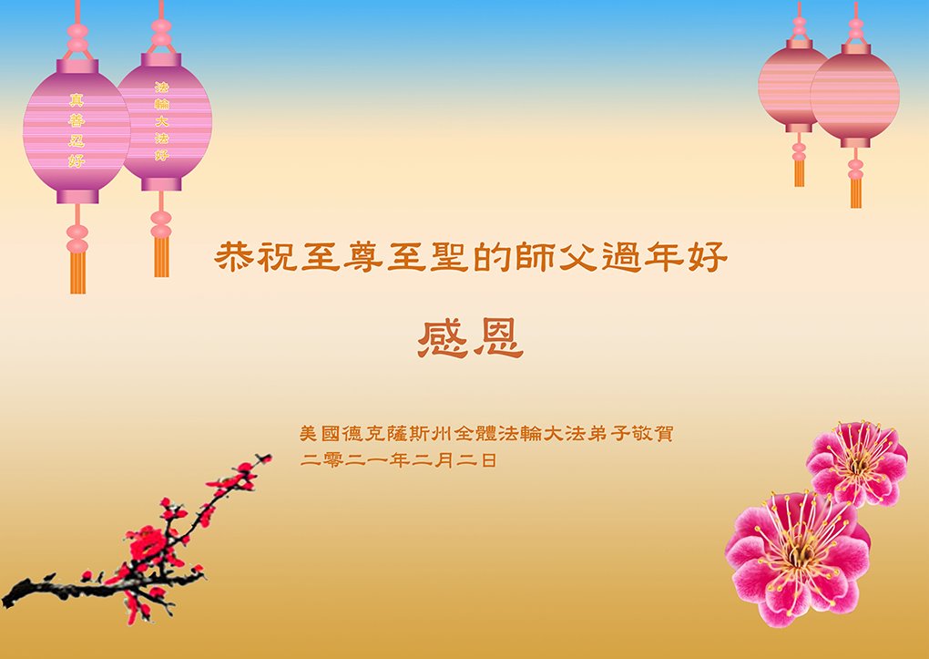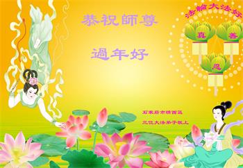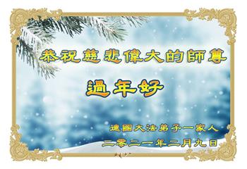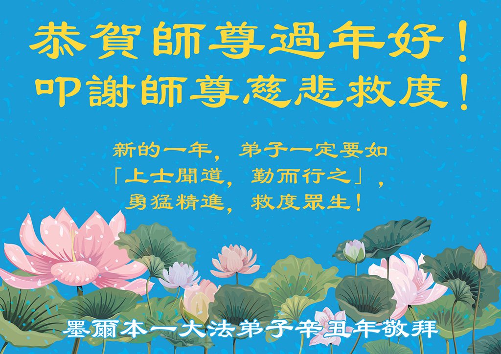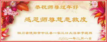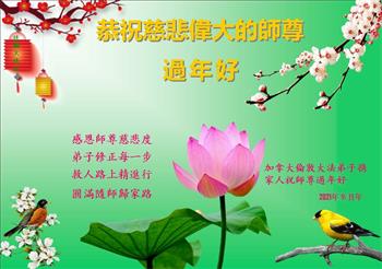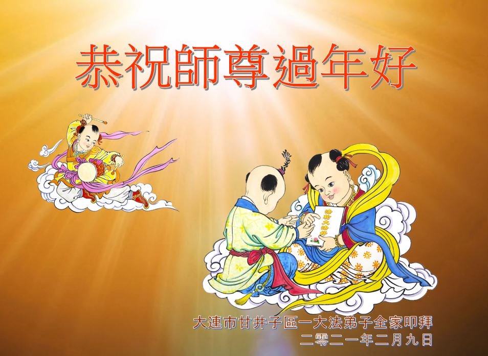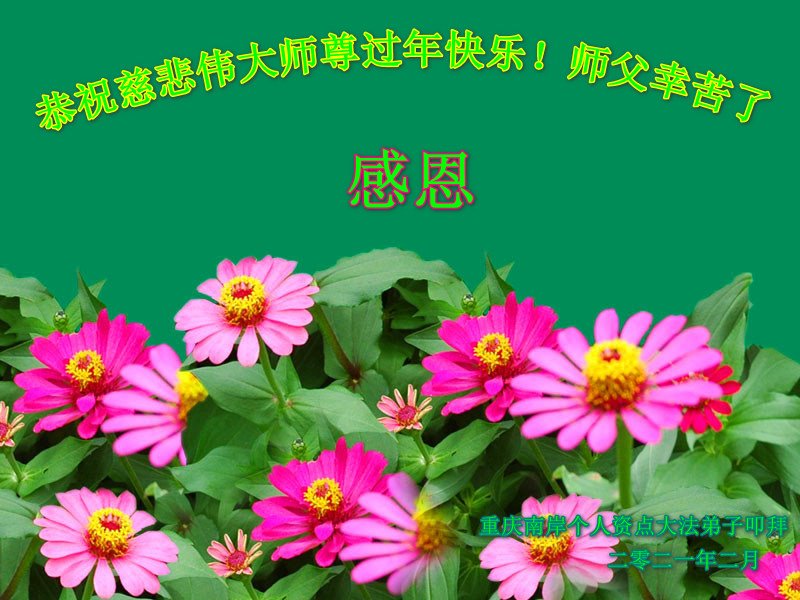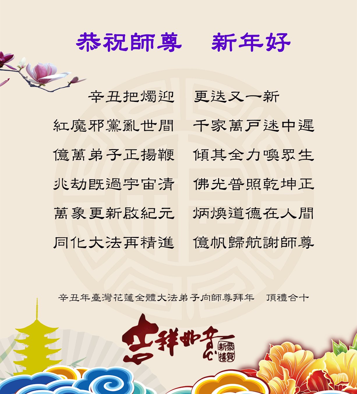 中国各军区、兵种大法弟子给师尊拜年 【明慧网二零二一年二月十二日】辛丑年新年到了,中国大陆各军区、兵种的大法弟子们恭祝伟大的李洪志师尊过年好!