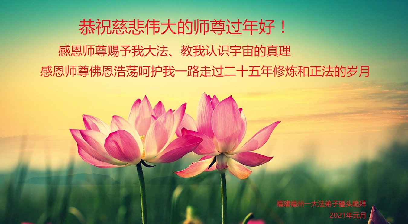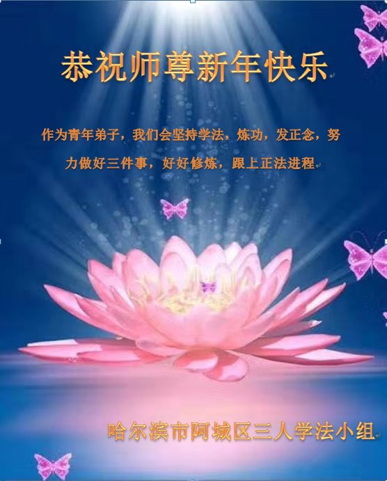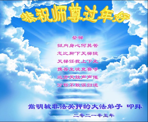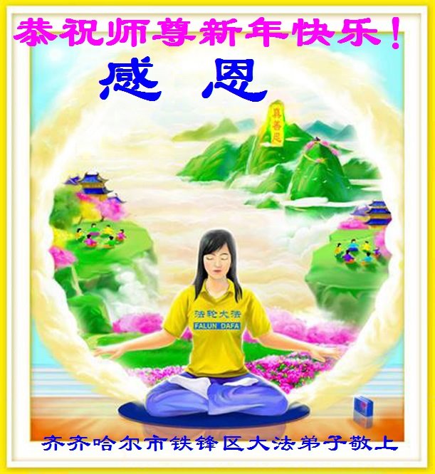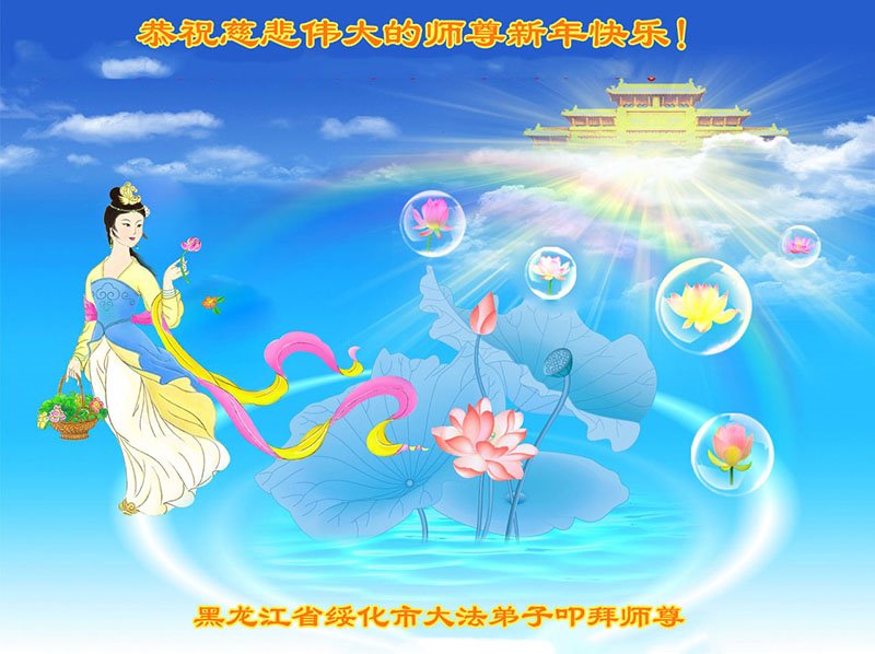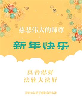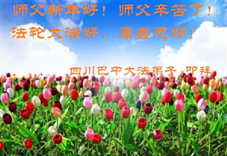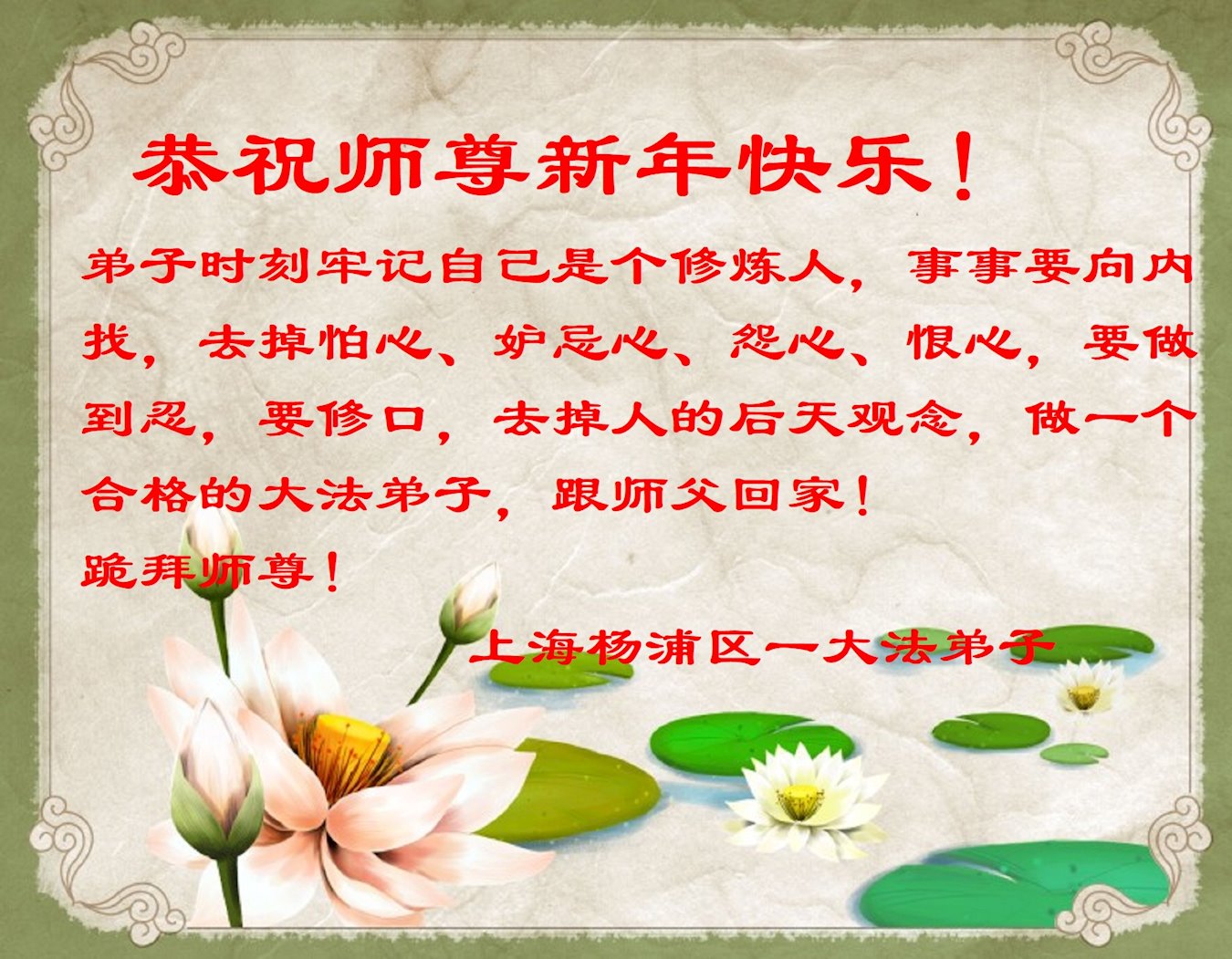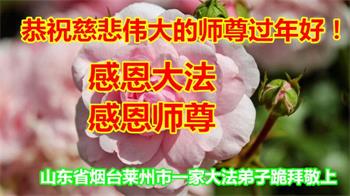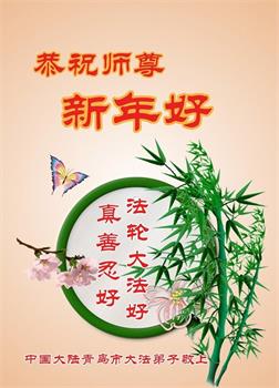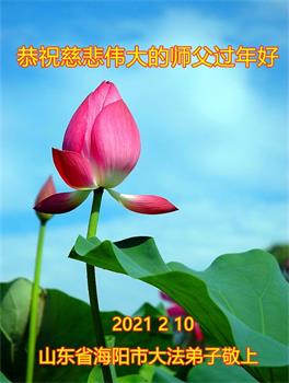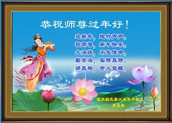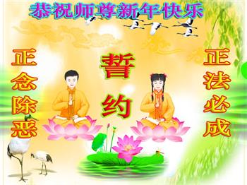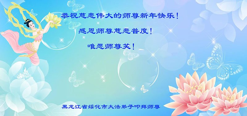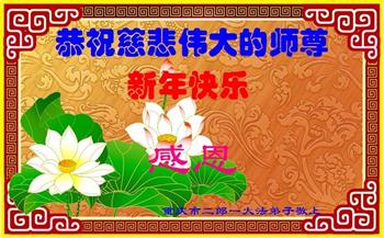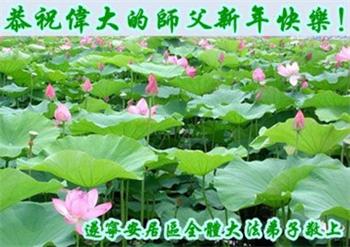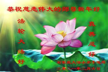 在这寰宇更新的伟大时刻,您用巨大的付出与承受为我们换来了新的一年,为了让更多的世人了解真相、有个美好的未来,我虽然深陷囹圄,无论身处何处,我都能感受到师父慈悲的保护,遇到的任何人都是我们要救度的生命。师父!在哪里我都会学好法,炼功发正念。在法中提高,在修炼中升华,去掉各种人心与执着,兑现史前誓约!让师尊少一份操劳,多一份欣慰!